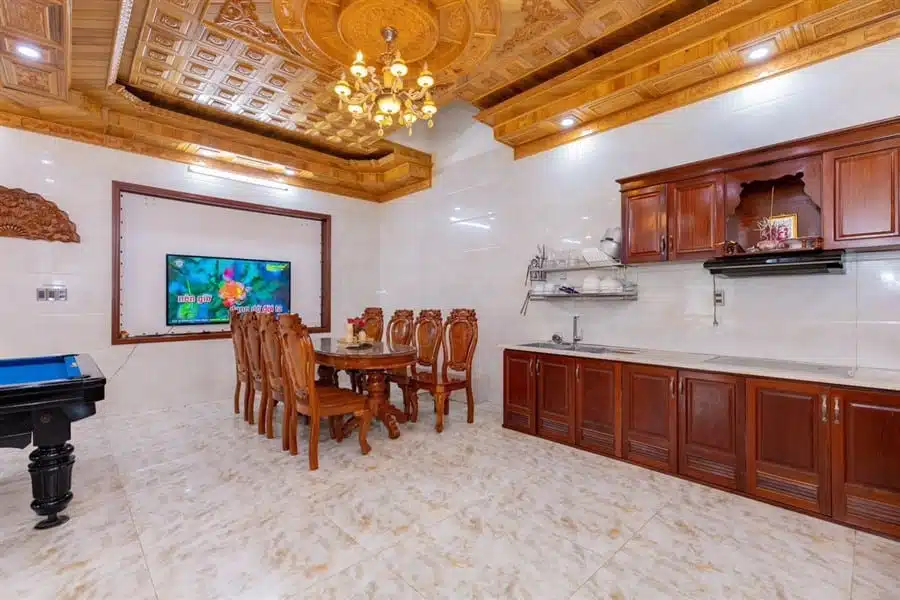 Các tiện ích tại villa bao gồm hồ bơi diện tích 24m2, phòng karaoke và bàn bi da miễn phí, cùng với phao bơi và loa kéo để giúp khách hàng có những giây phút thư giãn và vui chơi tuyệt vời nhất.