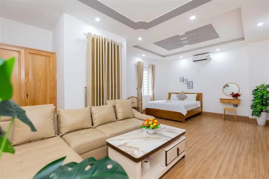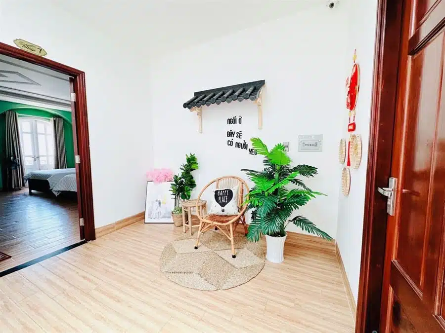 Mỗi phòng đều được trang bị đầy đủ tiện nghi và thoải mái, với không gian riêng tư và các tiện ích như điều hòa, tủ quần áo và phòng tắm riêng biệt. Ban công và view nội khu tạo điểm nhấn thêm sự thoải mái và trải nghiệm độc đáo cho du khách.
