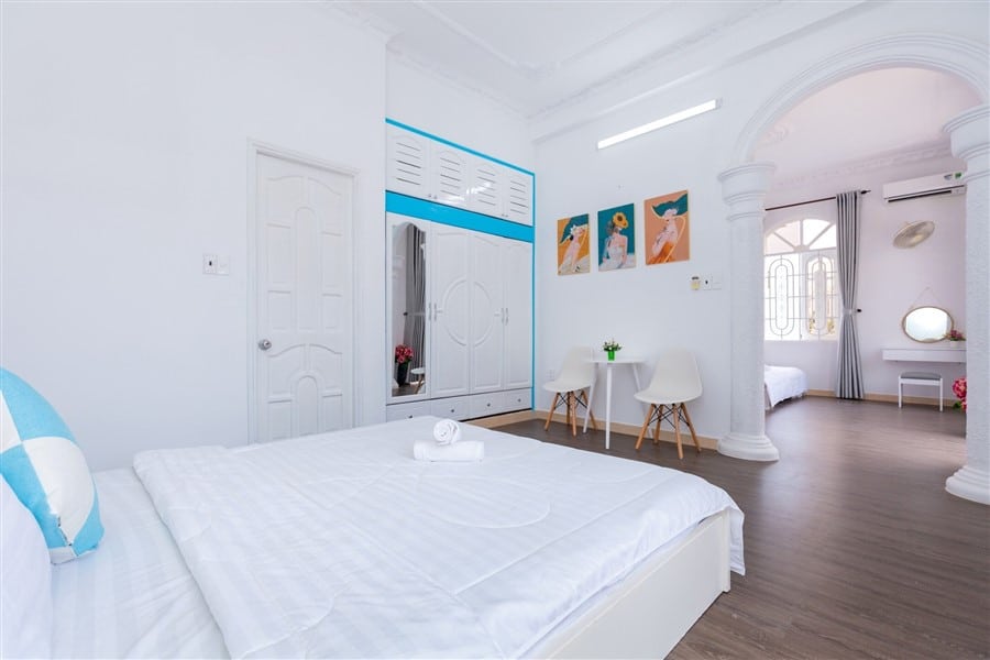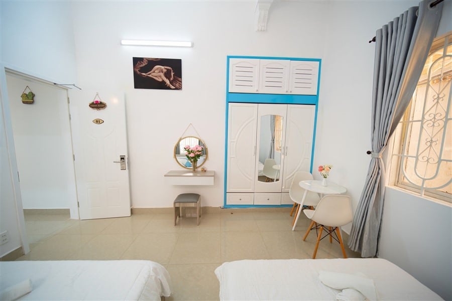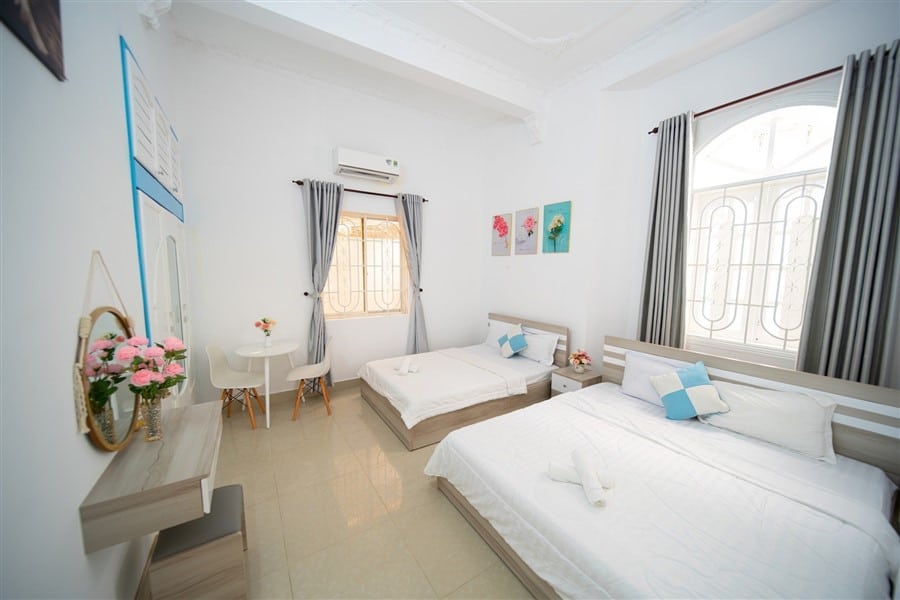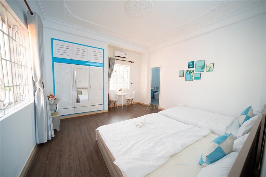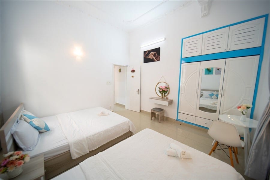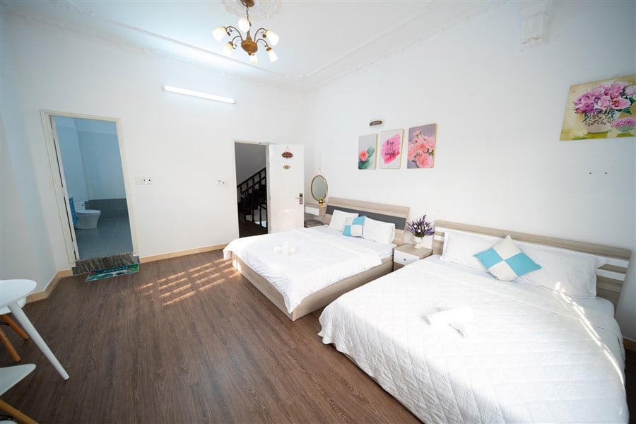 • 1 phòng ngủ hai giường đôi có 2 không gian riêng biệt chung 1 wc = 2 phòng ngủ (connecting room), phù hợp tập thể hoặc gia đình.