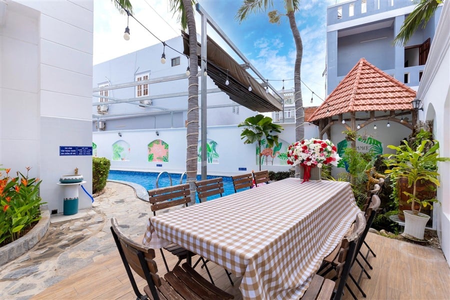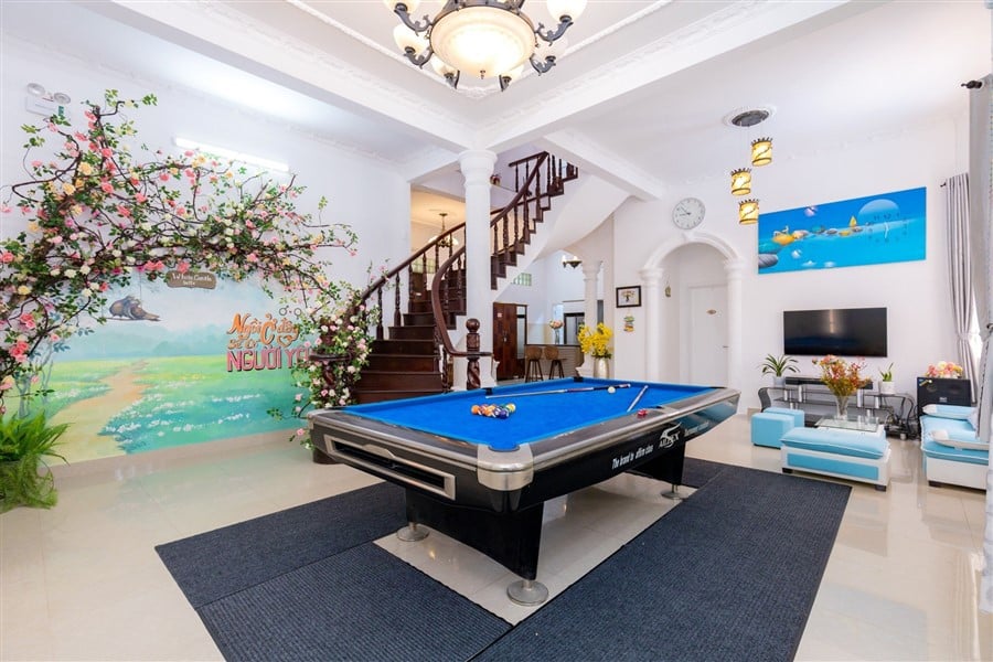 • Free phao bơi, thuyền, máy lạnh phòng khách, Karaoke trong nhà trước 22h, Bida, ghế massager, nước uống nóng lạnh.