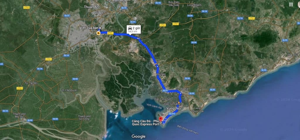 - Tiếp tục đi thêm khoảng 100km theo quốc lộ 51 để đến Vũng Tàu.