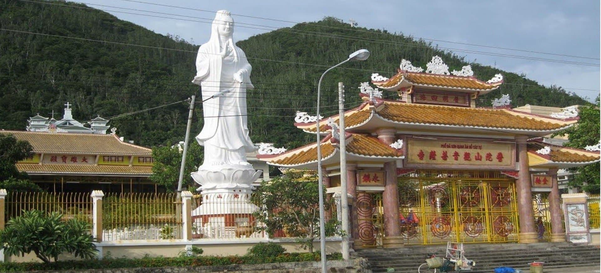 Từ xa, du khách đã có thể nhìn thấy tượng Quan Thế Âm Bồ Tát cao sừng sững hướng ra biển Đông, đôi mắt hiền từ, tay cầm bình cam lộ như đang dang rộng vòng tay che chở cho muôn dân. Hình ảnh ấy không chỉ mang giá trị tôn giáo sâu sắc, mà còn chứa đựng thông điệp nhân văn về lòng từ bi, sự cảm thông và niềm tin hướng thiện.