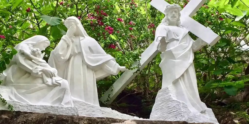 Đàng Thánh Giá và Đàng Mân Côi: Con đường dẫn lên tượng Đức Mẹ được trang trí với 14 chặng Đàng Thánh Giá và 20 màu nhiệm Mân Côi, tái hiện những sự kiện trong cuộc đời của Chúa Giêsu và Đức Mẹ, mang lại một hành trình cầu nguyện sâu sắc cho khách hành hương.