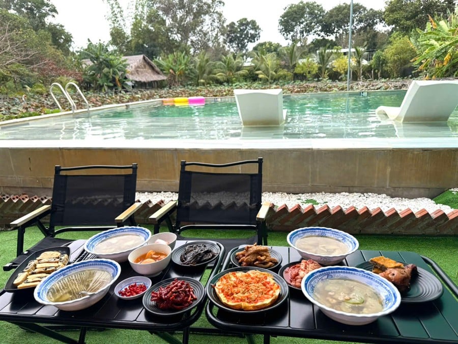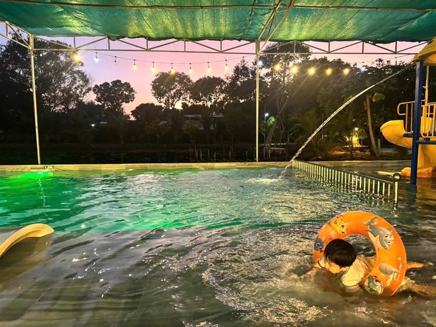✔ Hồ bơi siêu lớn cạnh hồ sen – không gian cực chill