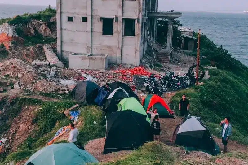 Bạn có thể mang theo lều, bàn ghế gấp, thảm picnic, thức ăn nhẹ và chọn một vị trí cao ráo hướng ra biển để dựng trại. Đêm xuống, khi thành phố lên đèn, cả không gian chìm trong ánh sáng lấp lánh từ xa, còn trên đầu là bầu trời đầy sao – một khung cảnh lãng mạn và yên bình hiếm có.