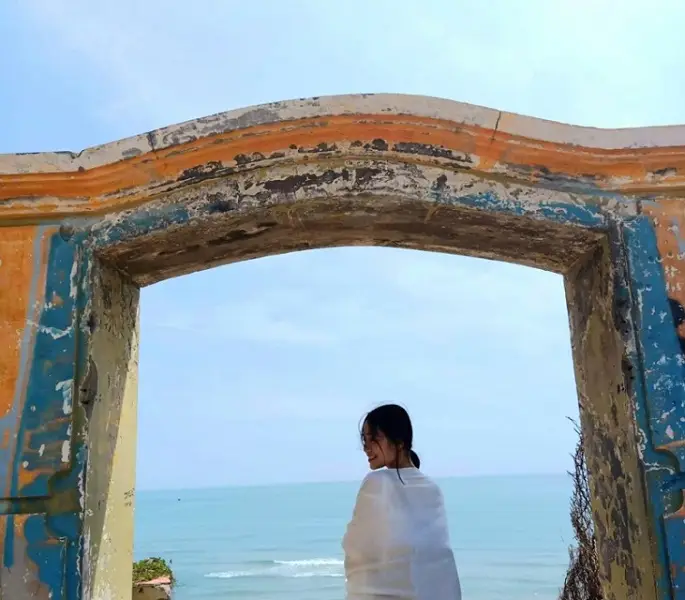 Khi bạn đứng giữa cánh cổng ấy, phía sau là nền trời xanh bao la, phía trước là biển cả mênh mông, gió thổi tung mái tóc và nắng phản chiếu trên khuôn mặt – chỉ một khoảnh khắc thôi, bạn sẽ cảm thấy mình như được thả hồn giữa đất trời vô tận.