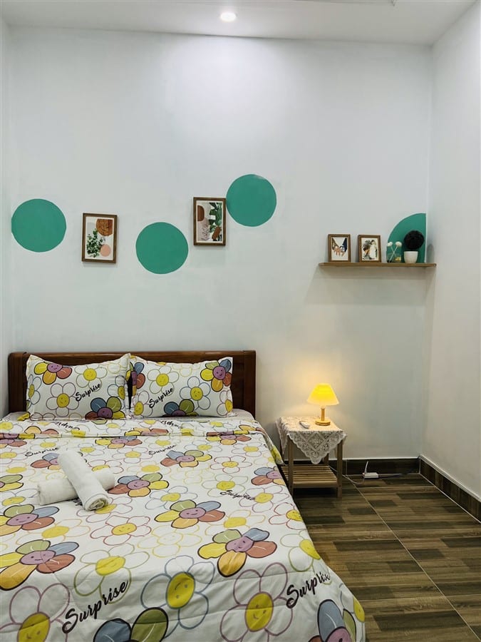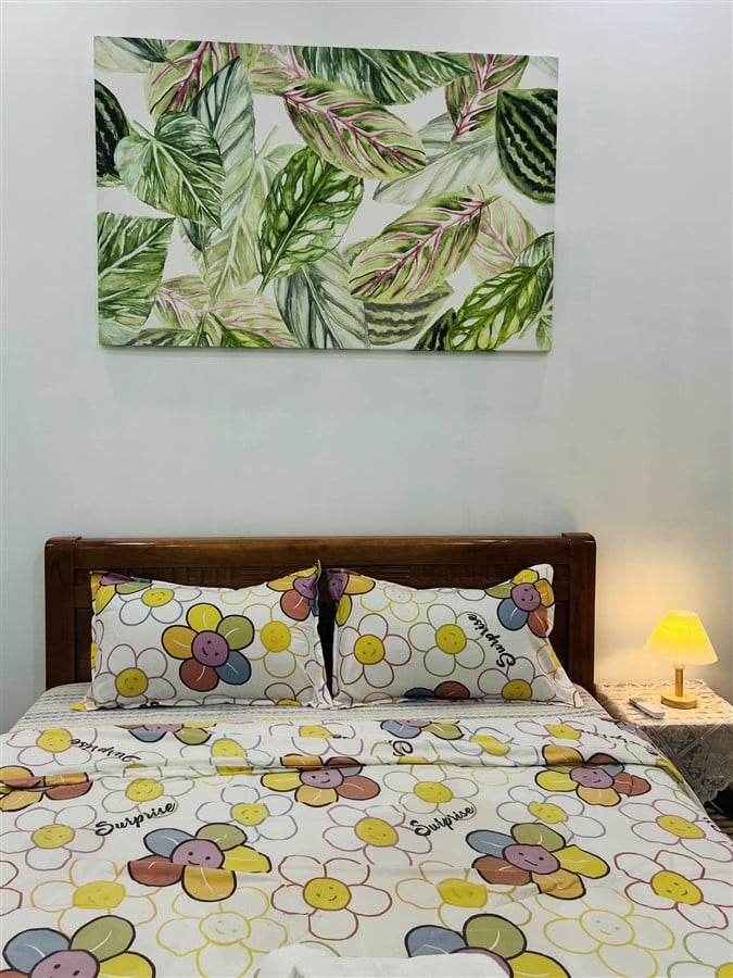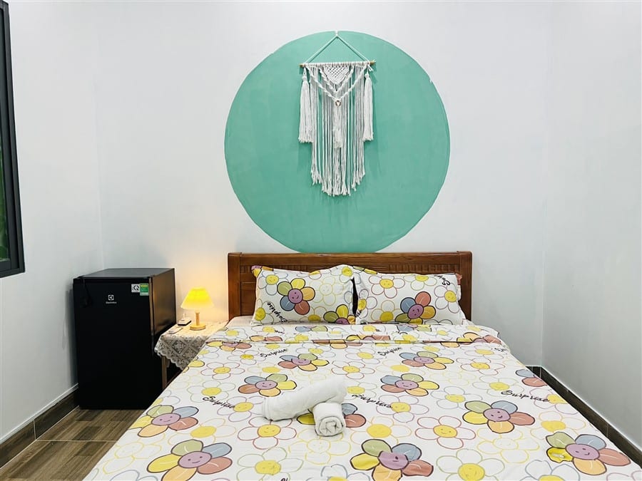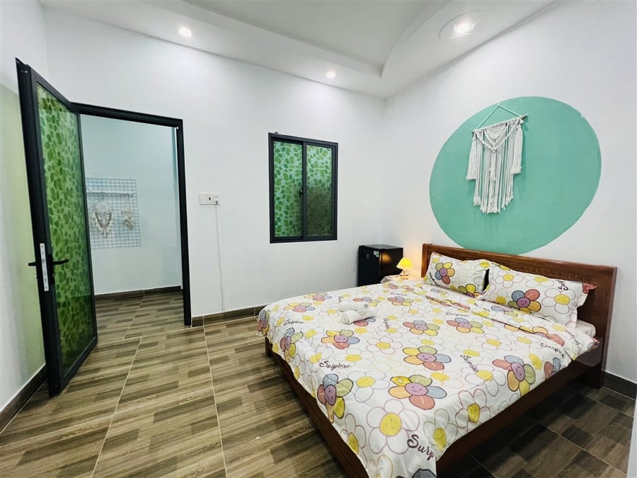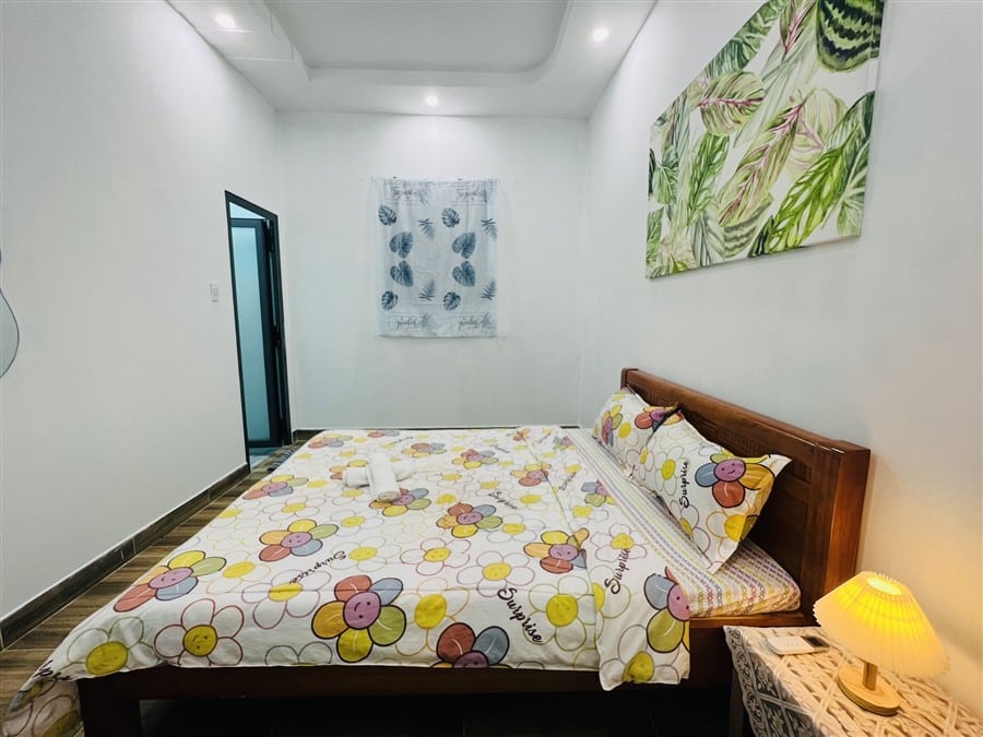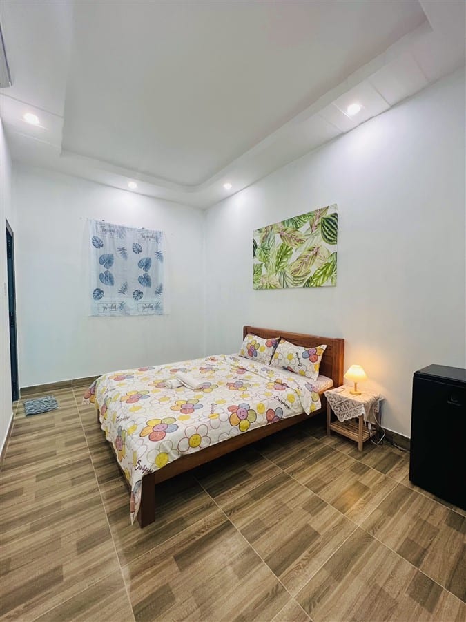 - Nhà gồm 3 phòng, 4 giường, 3 WC kèm 3 nệm thêm, phòng khách và sân rộng