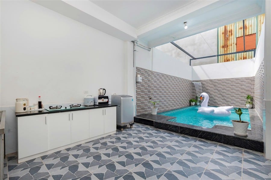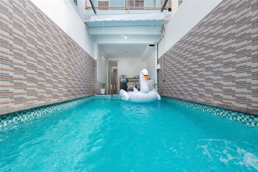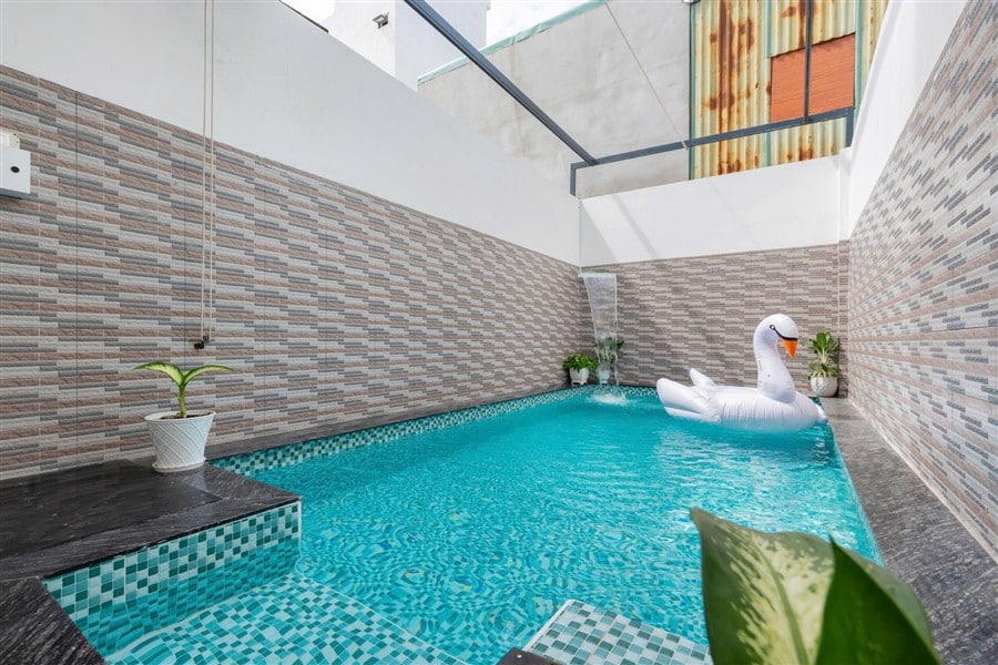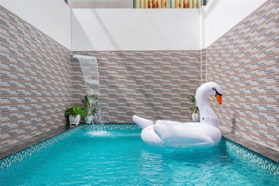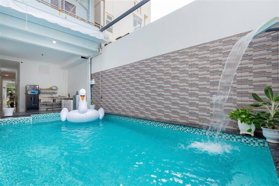 • Hồ bơi riêng rộng ~30m², có thác nước – đèn theo nhạc