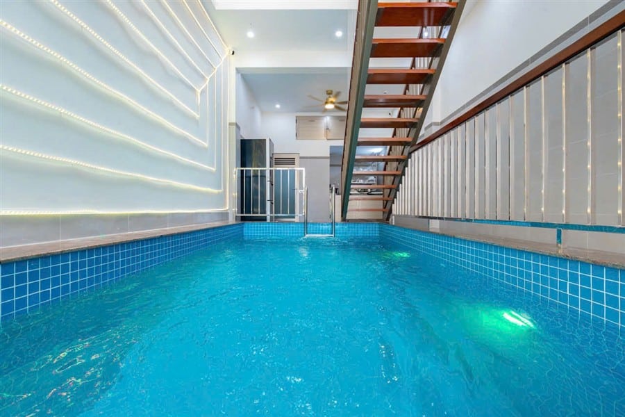 • Hồ bơi mini 20m², thoáng mát, có khu vực trẻ em, nước luôn sạch và được vệ sinh thường xuyên