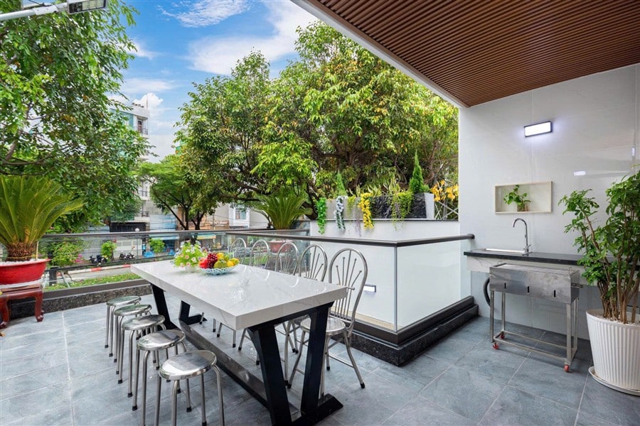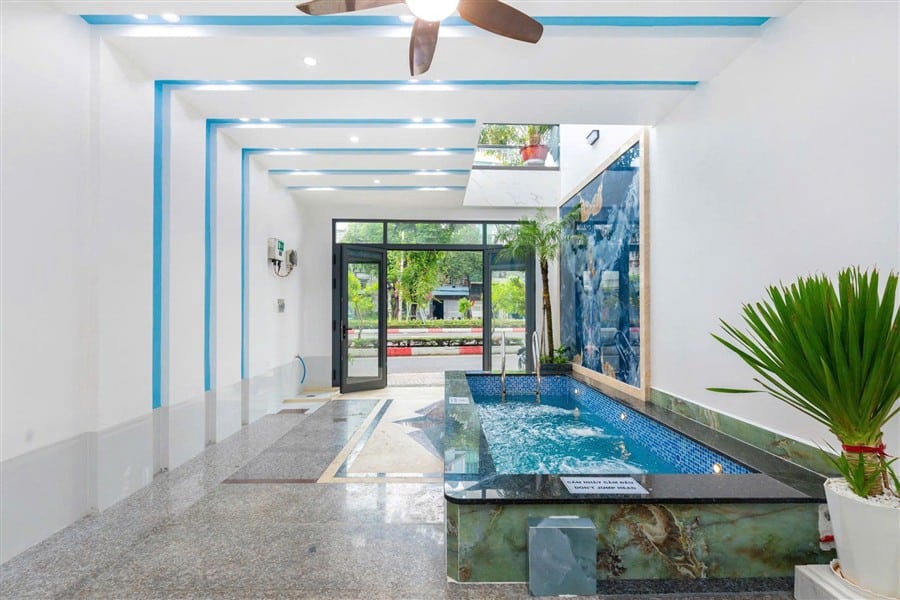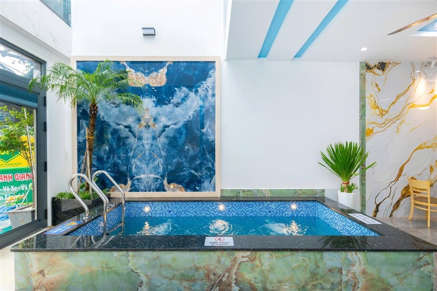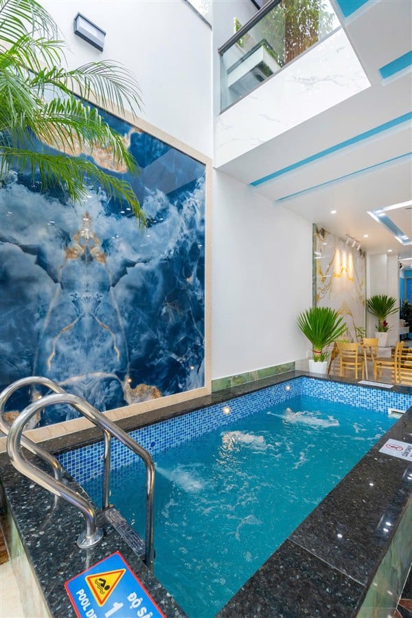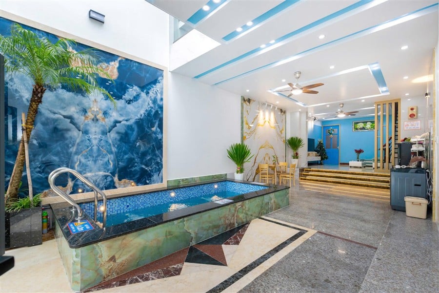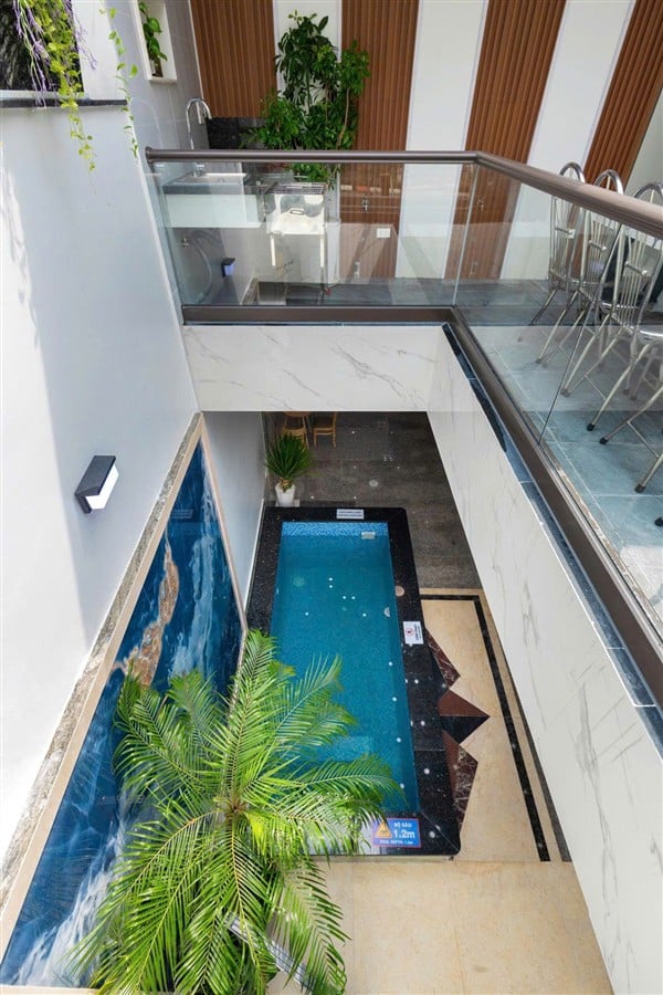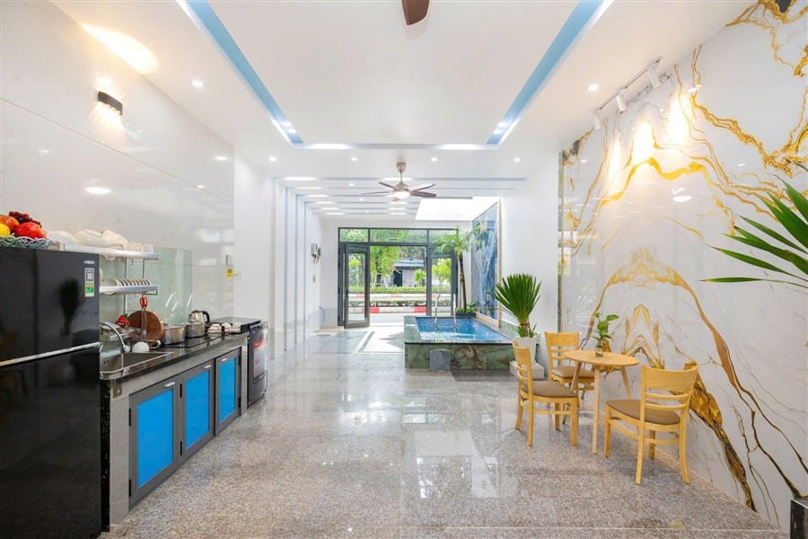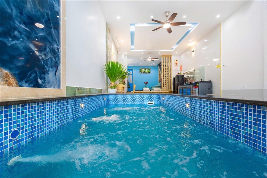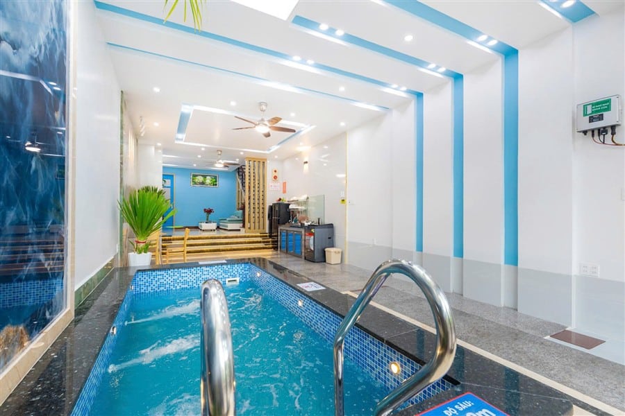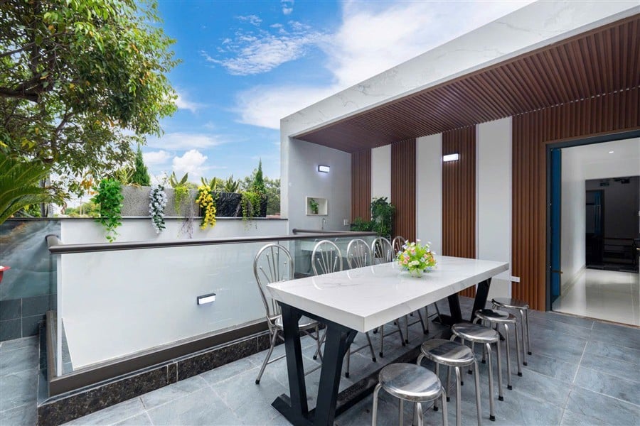 Căn nhà sở hữu 4 phòng ngủ siêu rộng, 6 giường lớn kèm nệm thêm linh động, 4 WC tiện nghi (có bồn tắm), hồ bơi riêng ngay tại nhà, khu bếp rộng rãi, sân BBQ và không gian sinh hoạt lớn — rất phù hợp cho tiệc nhẹ, sum họp gia đình, nhóm bạn và team-building.