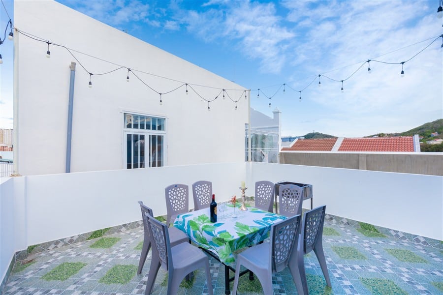 Căn nhà được bố trí 5 phòng ngủ, 6 giường lớn, 4 nệm phụ và 4 phòng vệ sinh trong nhà kèm 1 WC ngoài, đủ rộng để phục vụ nhóm từ 12 đến 20 khách. Sân thượng rộng rãi và khu vực BBQ là nơi lý tưởng để thư giãn hoặc tổ chức các buổi tiệc ngoài trời.