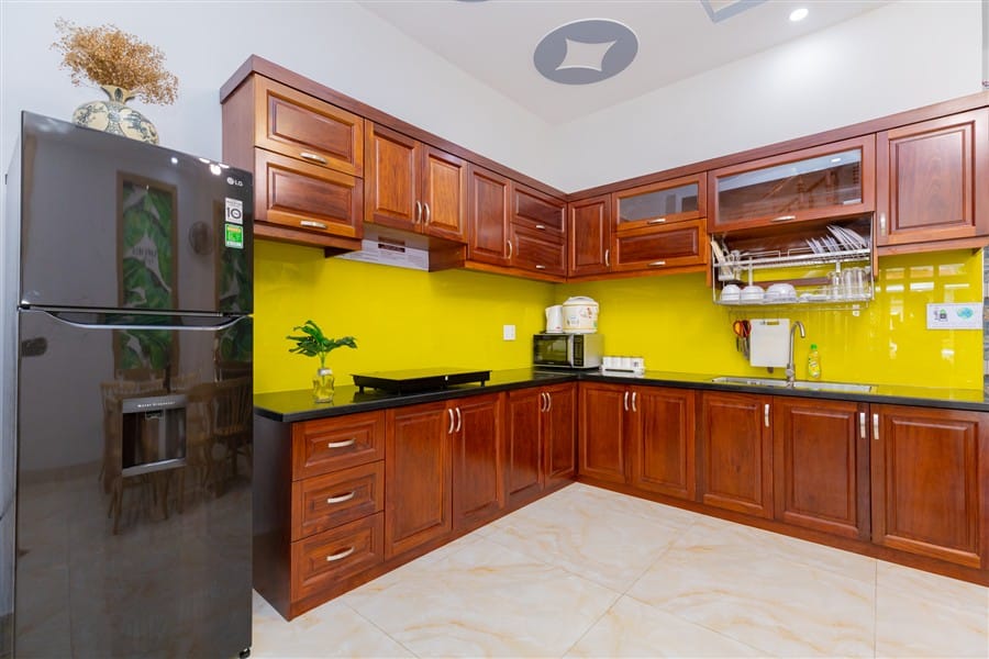 Bếp đầy đủ dụng cụ nấu ăn và gia vị cơ bản, phục vụ nấu ăn và BBQ