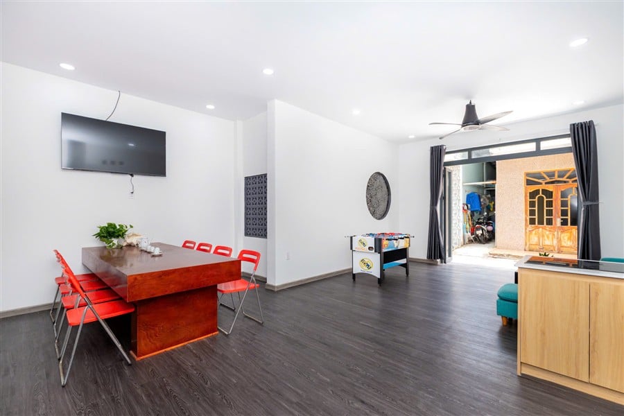 • Phòng khách và khu vực giải trí với tivi 55 inch, bàn Banh Lắc miễn phí