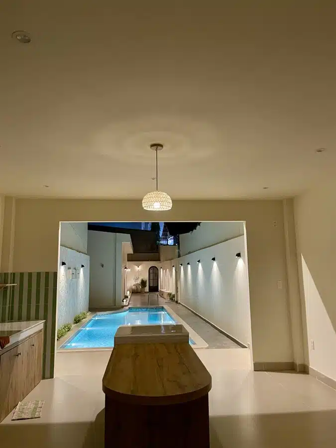 Căn nhà được thiết kế theo phong cách nghỉ dưỡng hiện đại, không gian mở, phòng khách kết nối trực tiếp với khu bếp và nhìn thẳng ra hồ bơi riêng – tạo cảm giác thư giãn như đang ở một villa mini giữa lòng thành phố biển. Đây là một trong những NHÀ NGUYÊN CĂN VŨNG TÀU GẦN BIỂN được nhiều gia đình và nhóm bạn yêu thích nhờ sự tiện nghi, rộng rãi và dễ sinh hoạt.