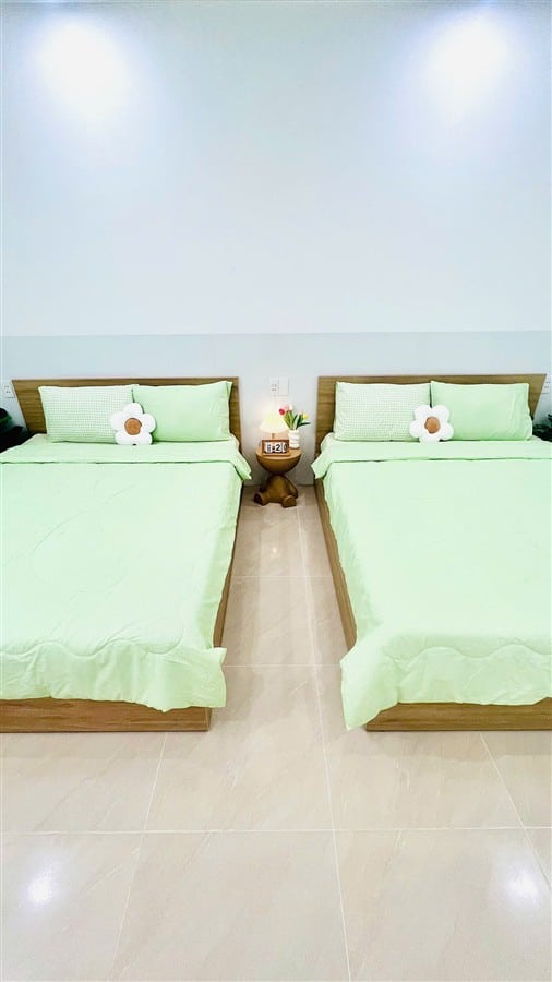 Căn nhà phố gồm 1 trệt và 2 lầu, được bố trí 7 phòng ngủ với 10 giường và 3 nệm phụ, bao gồm 4 phòng đơn và 3 phòng đôi, sức chứa tiêu chuẩn 15 khách và tối đa lên tới 30 khách. Tầng trệt có phòng đôi, phòng khách và bếp đầy đủ tiện nghi; tầng 1 và 2 gồm các phòng đơn và phòng đôi; sân thượng thoáng đãng là nơi lý tưởng để thư giãn, tổ chức các hoạt động ngoài trời hoặc tiệc nướng nhóm. Mỗi phòng đều có WC riêng, nội thất tiện nghi giúp cả gia đình hoặc nhóm bạn tận hưởng kỳ nghỉ thoải mái như ở chính ngôi nhà của mình.