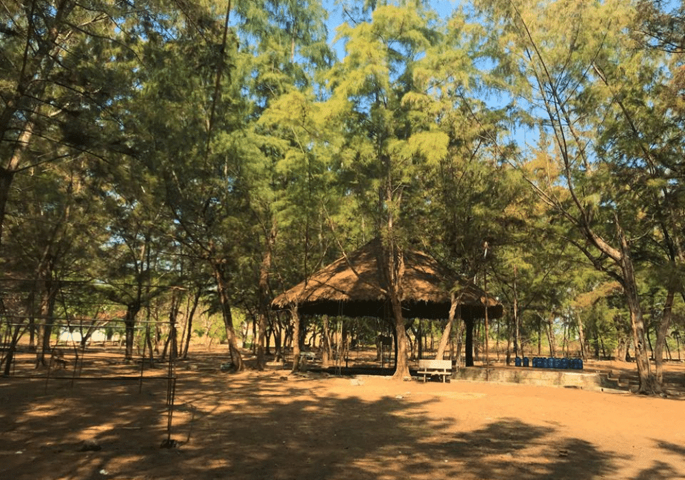 Ngay sau bãi biển là rừng dương xanh mát, nơi bạn có thể dựng lều và cắm trại.