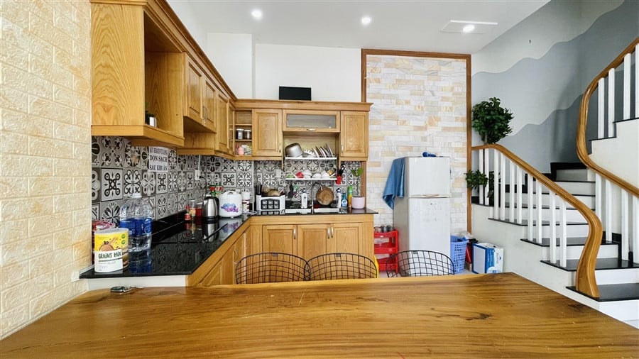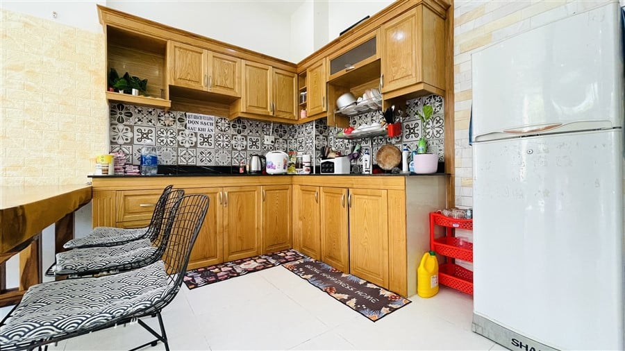 - Bếp nấu ăn được trang bị đầy đủ gia vị và dụng cụ cơ bản, giúp bạn có thể chuẩn bị những bữa ăn ngon miệng ngay tại nhà