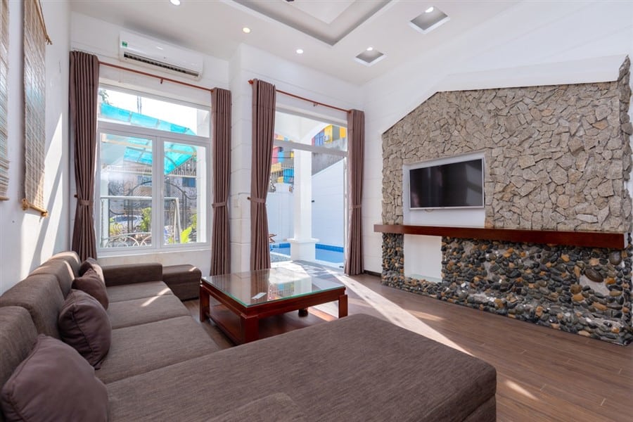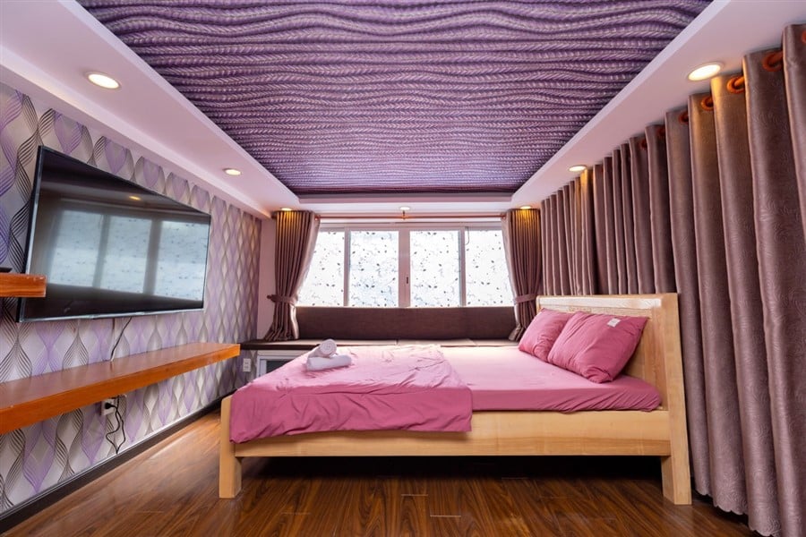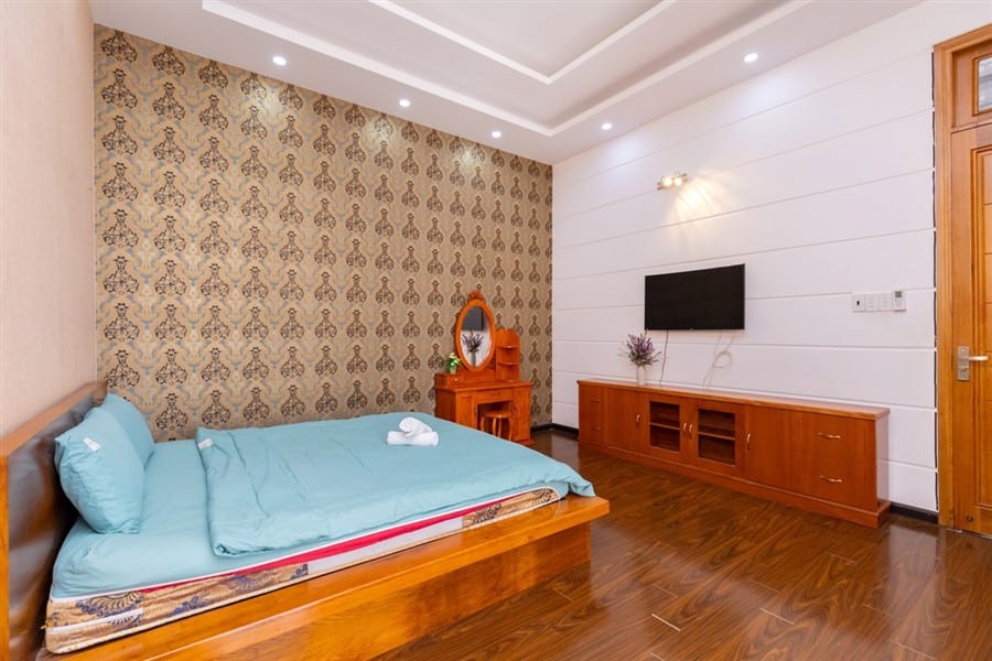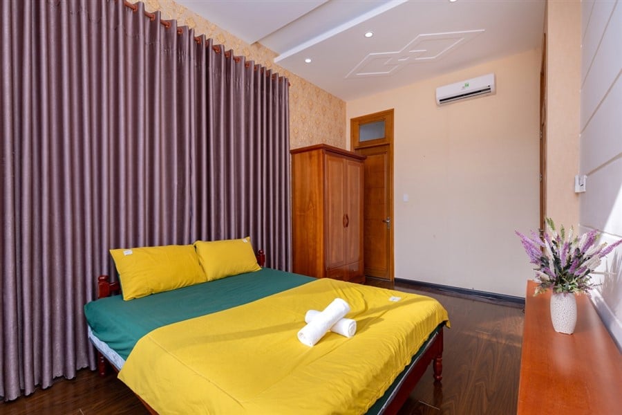 - Phòng ngủ 5 (tầng lửng): 1 giường đôi lớn, TV, điều hòa 2 chiều, WC khép kín, view nội khu.