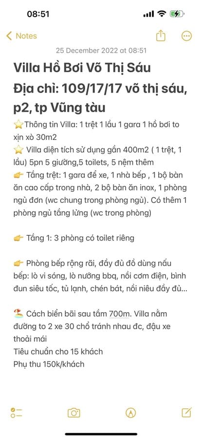 Với giá phòng tiêu chuẩn cho 15 người và khả năng nhận tối đa 30 người, Villa 109/17/17 Võ Thị Sáu là điểm đến hoàn hảo cho kỳ nghỉ lý tưởng tại Vũng Tàu. Đừng bỏ lỡ cơ hội trải nghiệm không gian sang trọng và tiện ích đẳng cấp tại biệt thự này.