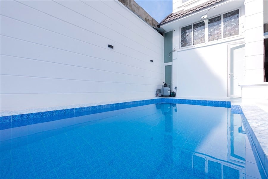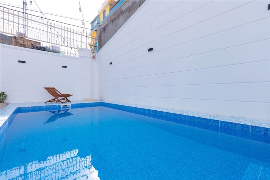 - Bể bơi riêng 30m2 là điểm nhấn hoàn hảo cho những khoảnh khắc giải trí và thư giãn của bạn.