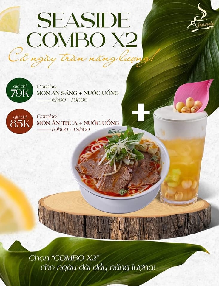 Bên cạnh đó, Seaside Cafe cũng cung cấp thực đơn đa dạng với nhiều món ăn và đồ uống phong phú. Bạn có thể thưởng thức từ các loại cà phê pha máy hiện đại đến những món ăn nhẹ nhàng, bánh ngọt hấp dẫn. Đặc biệt, quán còn phục vụ các loại nước ép trái cây tươi ngon và các món đặc sản vùng biển, giúp bạn có thêm nhiều lựa chọn phong phú khi đến đây.