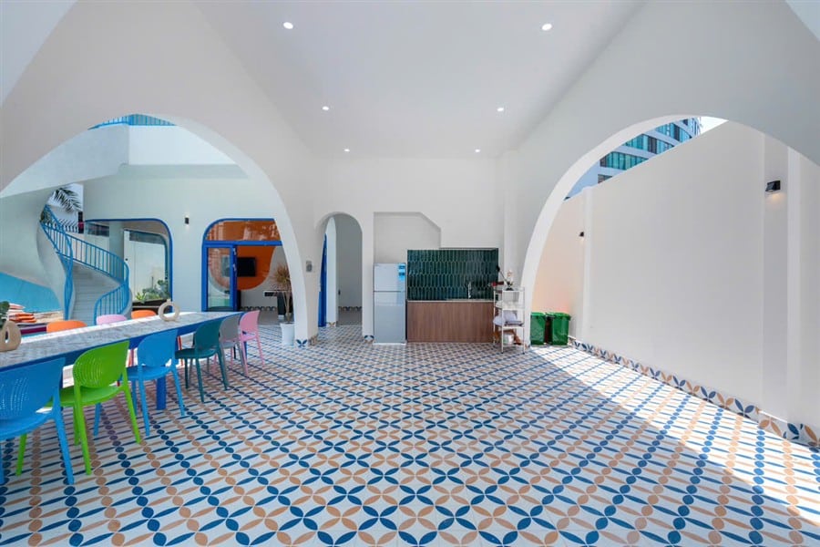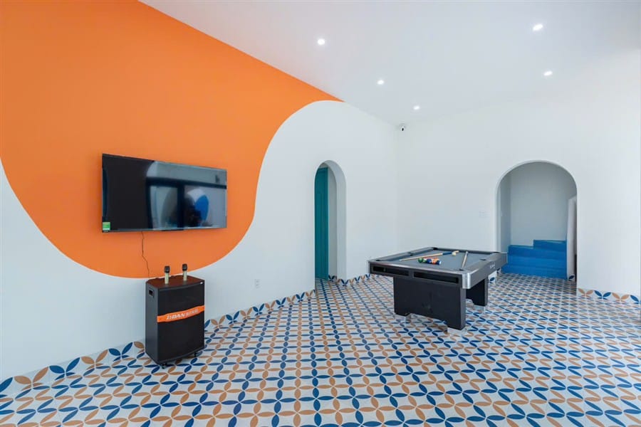 • Tầng trệt: 2 phòng đơn, 1 toilet chung, phòng khách karaoke, sân vườn BBQ