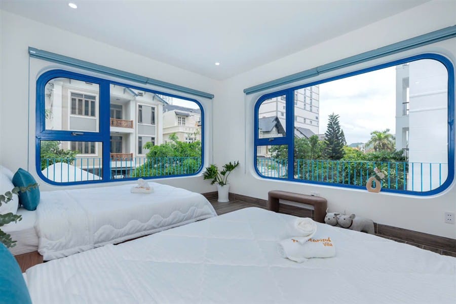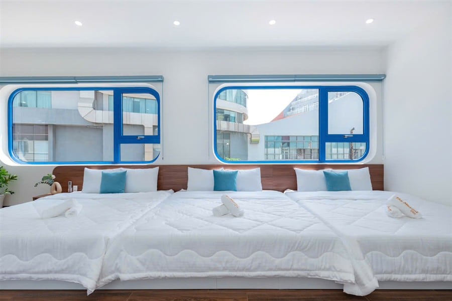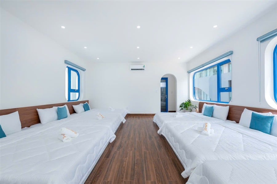• Tầng 1: 4 phòng 2 giường, mỗi phòng có toilet riêng