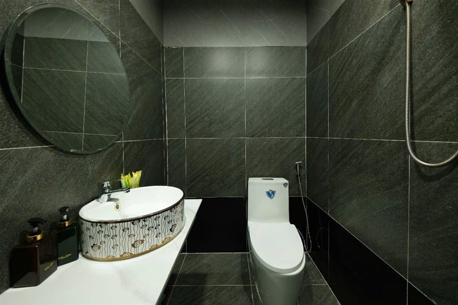 Tầng trệt: 1 phòng VIP với bồn tắm, 1 phòng đơn, 2 WC riêng; phòng khách máy lạnh rộng rãi với sofa sang trọng, TV màn hình lớn, bàn bida miễn phí và phòng karaoke riêng cách âm 24/24, đảm bảo trải nghiệm giải trí và thư giãn cho mọi thành viên.