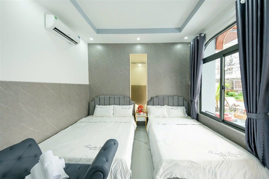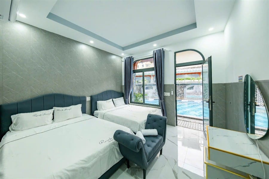 Villa có 7 phòng ngủ, tổng cộng 12 giường lớn và 10 nệm phụ, sức chứa tiêu chuẩn 25 khách và tối đa 35 khách khi sử dụng thêm nệm.