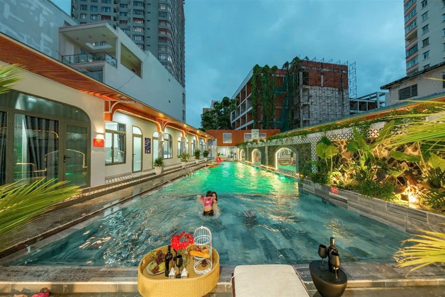 Villa 10 Nguyễn Hiền tọa lạc tại trung tâm TP. Vũng Tàu, Phường 2, đối diện Công viên Hồ Võ Thị Sáu, chỉ cách Bãi Sau 150m, giúp bạn dễ dàng đi bộ ra biển, tận hưởng nắng vàng và các hoạt động vui chơi tại bãi biển nổi tiếng. Villa nổi bật với hồ bơi hình lớn 150m², phong cách Địa Trung Hải, hồ bơi trẻ em riêng 60cm, giàn phun nước và đèn hồ đổi màu lung linh về đêm, mang đến không gian nghỉ dưỡng lý tưởng, vừa thư giãn vừa giải trí. Đây là điểm dừng chân hoàn hảo cho gia đình đông người, nhóm bạn hoặc các đoàn du lịch lớn, mong muốn trải nghiệm đầy đủ tiện nghi và không gian rộng rãi.
