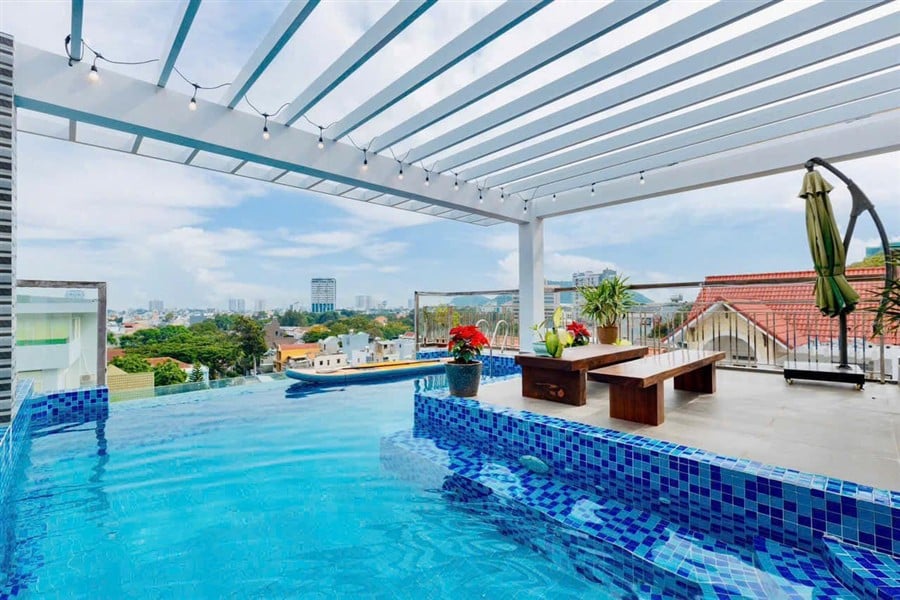 Không gian rộng rãi, thiết kế hiện đại, kết hợp hồ bơi, sân vườn và sân thượng lý tưởng cho mọi hoạt động