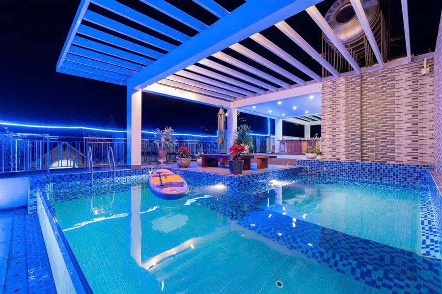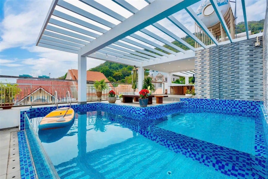 Ngoài ra, villa còn trang bị đầy đủ tiện ích giải trí: karaoke với loa kéo chất lượng, miễn phí SUP chèo để trải nghiệm thể thao trên hồ bơi hoặc bãi biển gần đó. Gara ô tô rộng rãi, có thể đậu 2 xe, cùng khu vực để xe bên hông hoặc trước villa, giúp bạn hoàn toàn yên tâm khi lưu trú. Từ villa, bạn cũng có thể thưởng thức trọn vẹn view hướng thành phố và núi, mang lại cảm giác hòa mình với thiên nhiên nhưng vẫn gần trung tâm thành phố, thuận tiện cho mua sắm, vui chơi và khám phá ẩm thực địa phương.