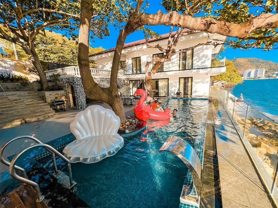 - Villa mặt biển với diện tích 350m2, hồ bơi vô cực 40m2, và các phòng ngủ thoải mái.