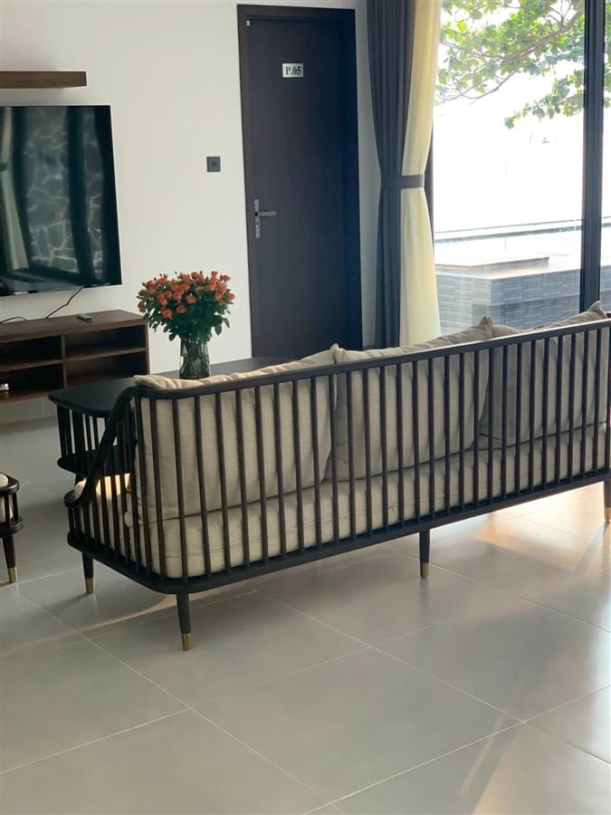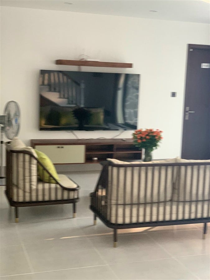 - Phòng Khách với sofa, tivi Smart 55 inch, quạt (3 cây quạt).