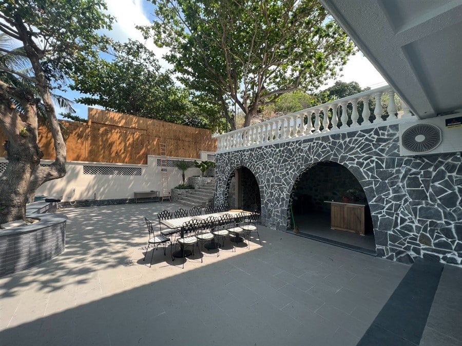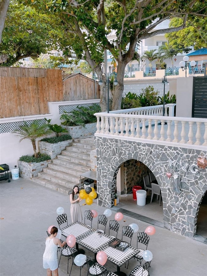 Du khách có thể tận hưởng không gian xanh mát của sân vườn và ngắm nhìn khung cảnh biển hùng vĩ từ villa. Đây cũng là nơi lý tưởng để tổ chức các buổi tiệc ngoài trời hay thưởng thức hoàng hôn lãng mạn cùng gia đình và bạn bè.