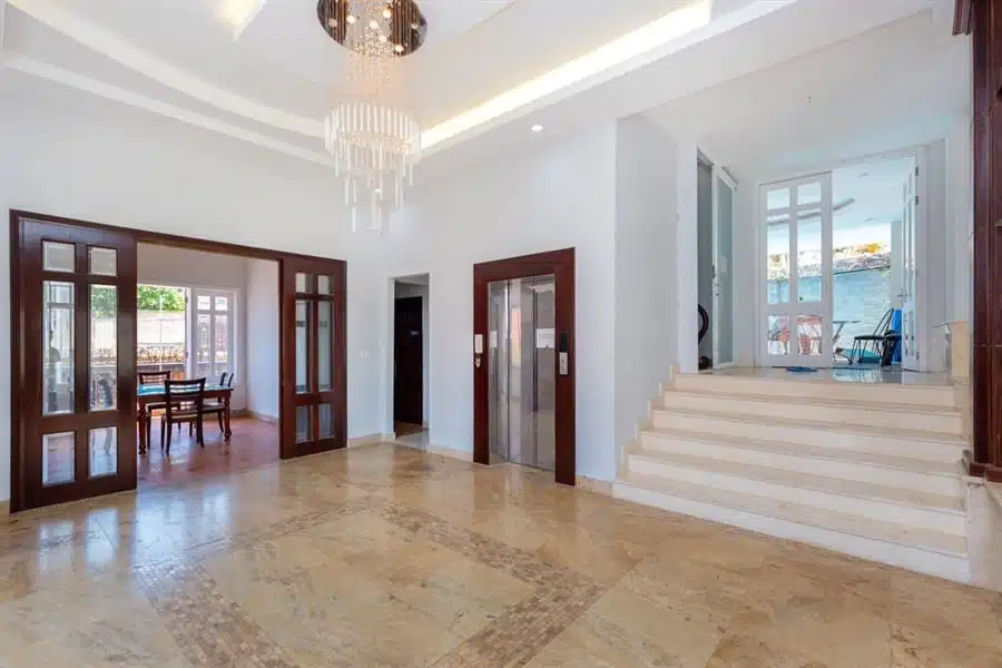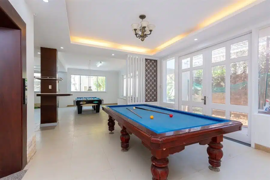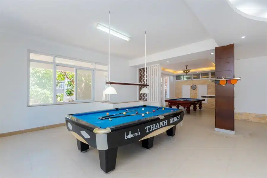 Villa này được trang bị đầy đủ các tiện nghi hiện đại như hồ bơi riêng có diện tích 50m2, phòng giải trí với bàn bida, bóng bàn và phòng karaoke riêng biệt. Đặc biệt, phòng hội nghị với view biển và cáp treo tuyệt đẹp mang đến không gian sang trọng và thư giãn cho khách hàng.
