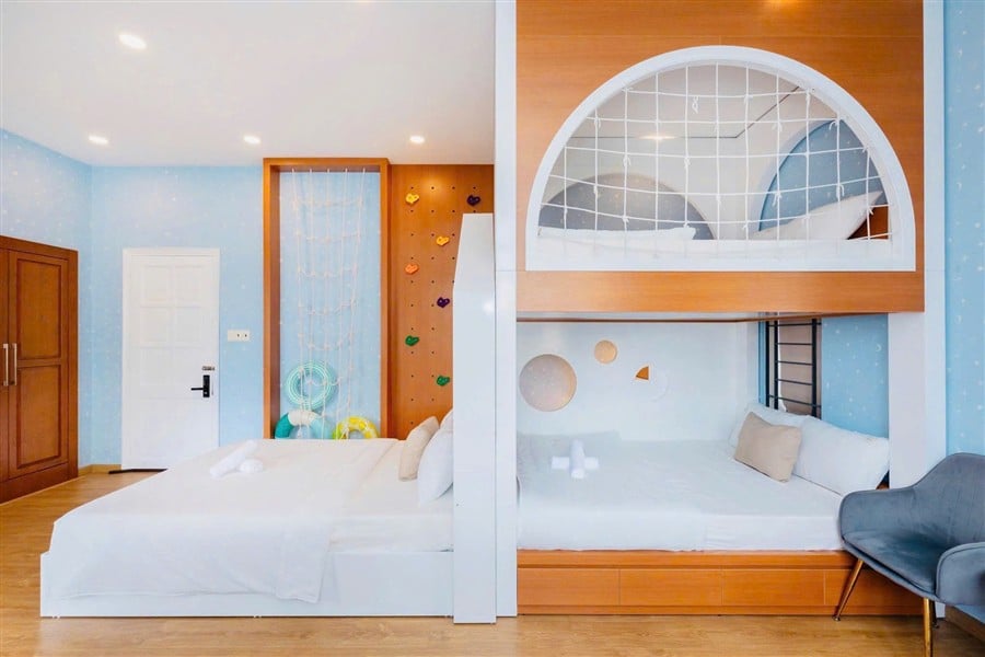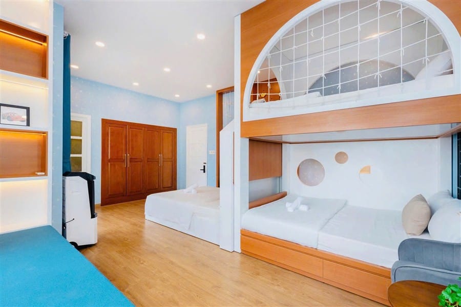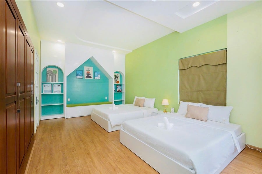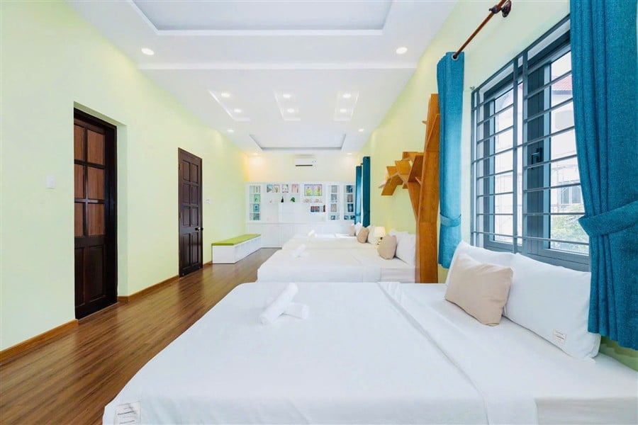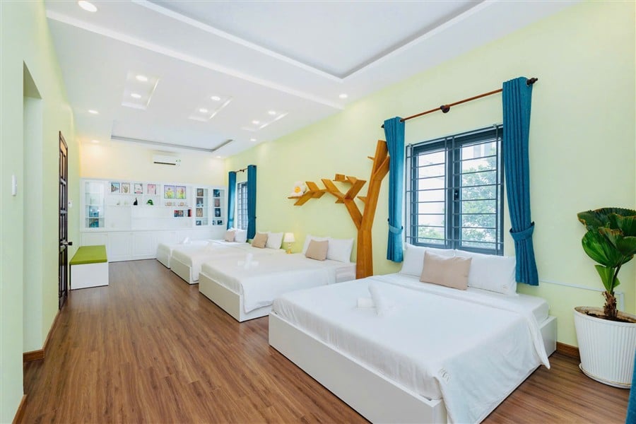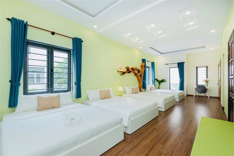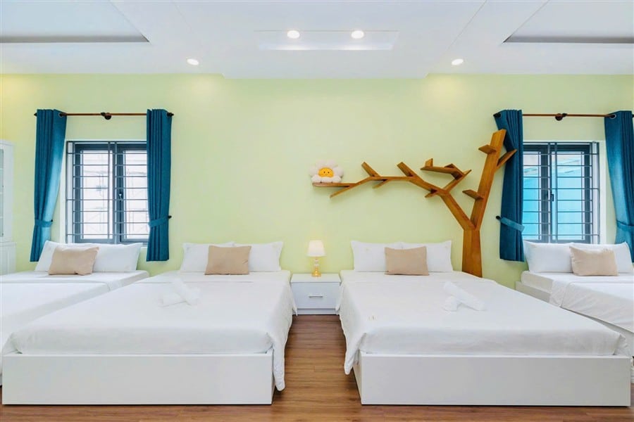 Phòng Family: 3 giường lớn, phù hợp gia đình 4–6 người.