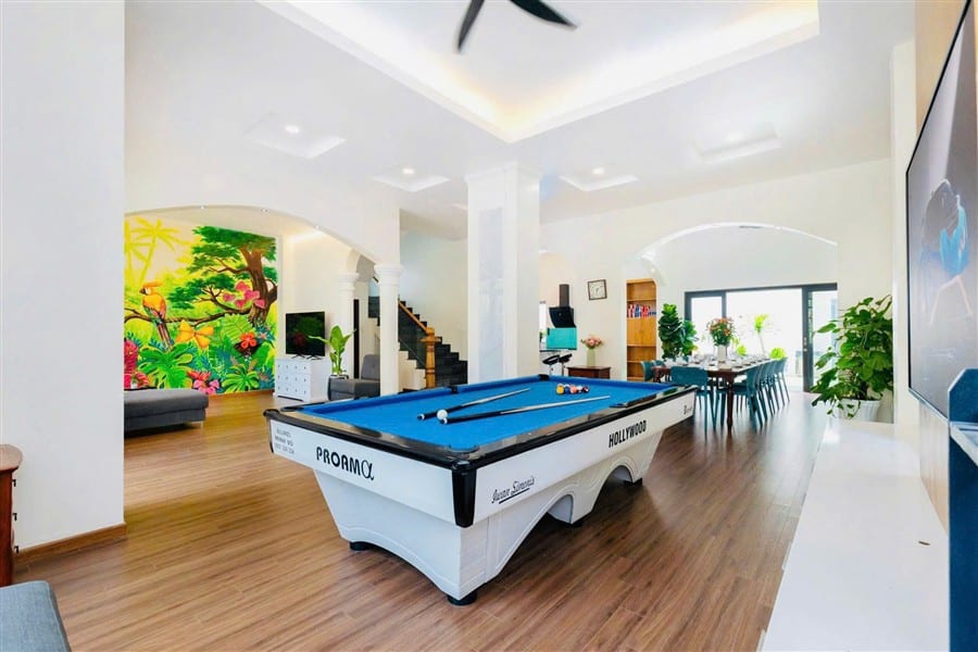 Với 6 phòng ngủ, 13 giường, hồ bơi riêng 40m², phòng karaoke, bàn bida và sân BBQ cực rộng, villa mang đến cho bạn một kỳ nghỉ trọn vẹn, nơi nghỉ dưỡng và giải trí hòa quyện hoàn hảo.