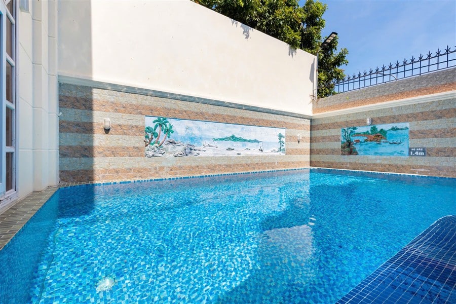 💦 Hồ bơi: 30m² – hồ nước muối tự nhiên, không clo, không acid, thân thiện với da
