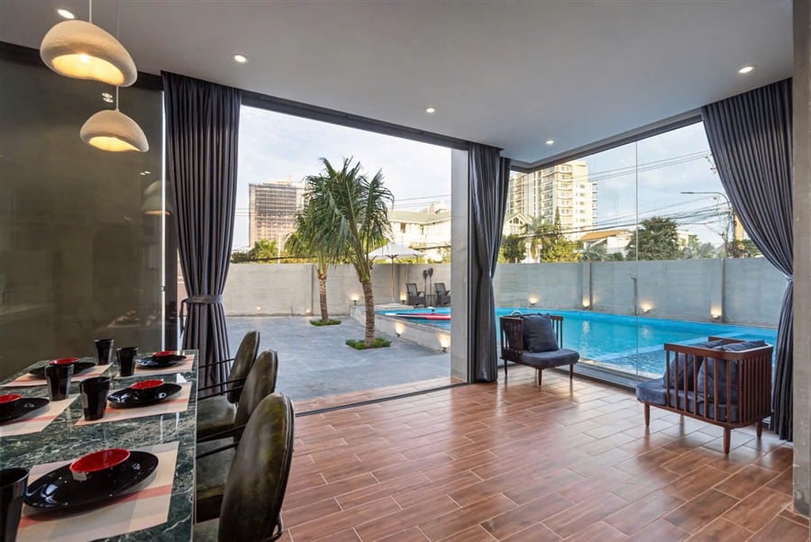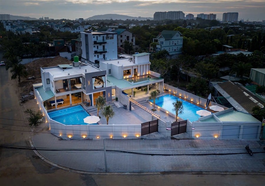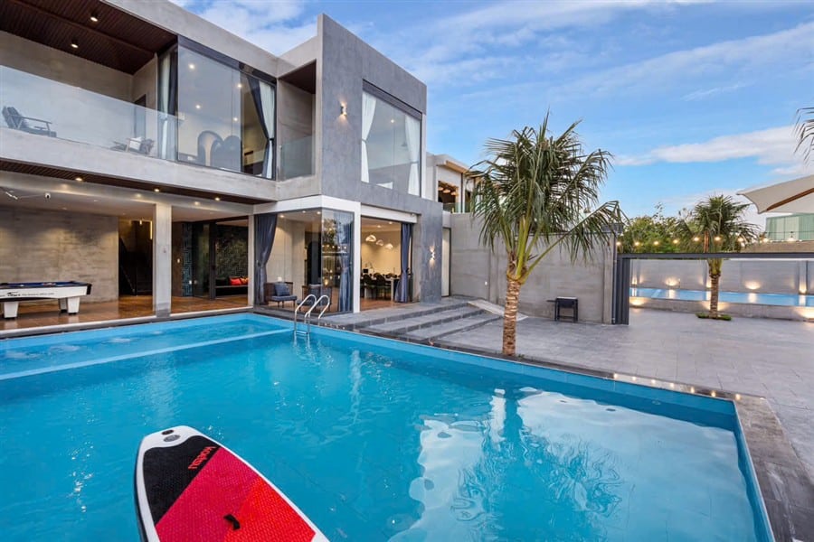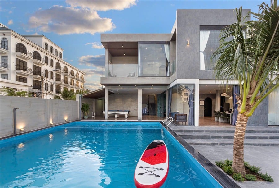 Với thiết kế hiện đại, nội thất sang trọng, hồ bơi cực rộng 100m2 cùng đầy đủ tiện ích giải trí như bàn bida, karaoke, BBQ ngoài trời, villa này được đánh giá là một trong những villa đẹp tại Vũng Tàu đáng để trải nghiệm.