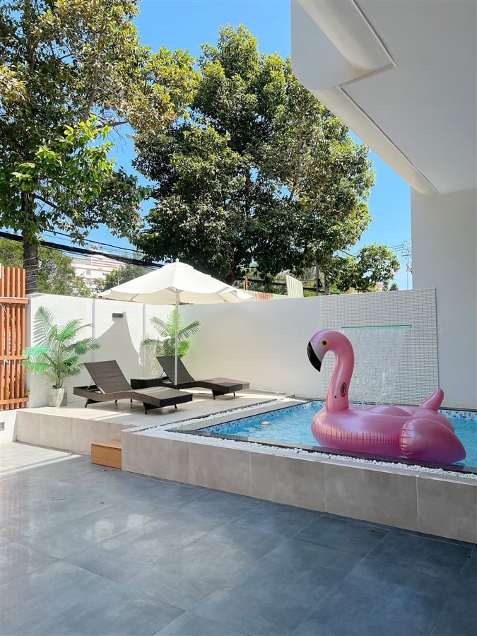 Villa 185A Võ Thị Sáu nổi bật với hồ bơi muối có diện tích 40m2, mang đến không gian thư giãn và tận hưởng cho các du khách. Ngoài ra, biệt thự còn được trang bị sẵn các tiện nghi như phòng karaoke với 2 mic, khu vực BBQ ngoài trời, và cầu tuột cho trẻ em, tạo điều kiện cho mọi người có những trải nghiệm thú vị và thoải mái.