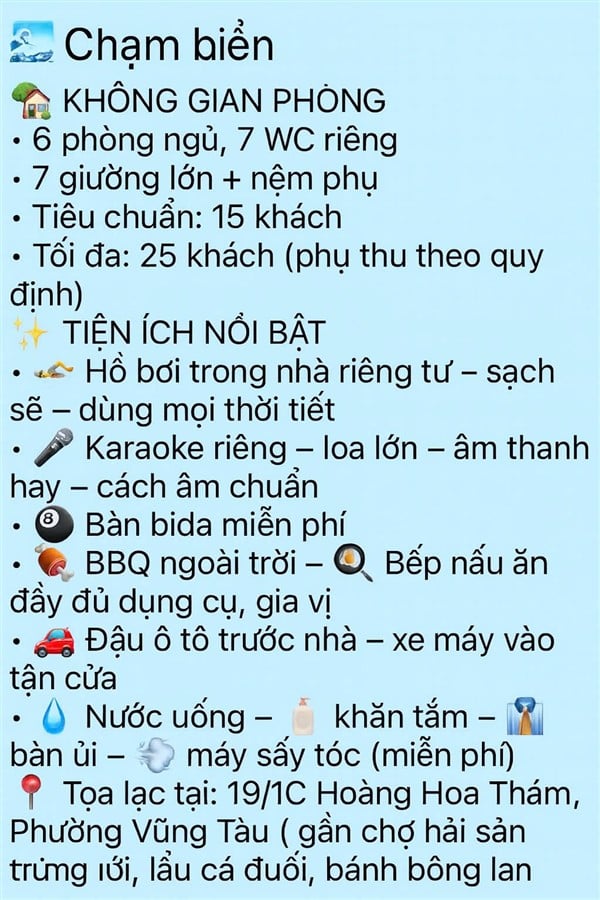 Để biết thông tin chi tiết và đặt phòng, quý khách vui lòng liên hệ trực tiếp với King Villa Vũng Tàu qua số điện thoại 0901337955.
