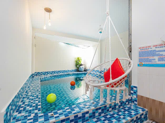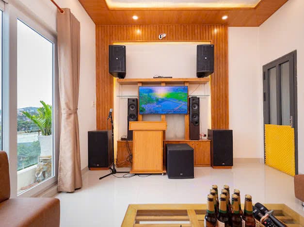 Tiện ích miễn phí tại villa bao gồm một hồ bơi 28m2 với 3 vòi sục và 2 làn thác nước, hồ trẻ em an toàn, hơn 300 loại phao, bàn bida, bàn bi lắc đá bóng, ghế massage, bếp nướng BBQ, loa karaoke, ghế tình yêu và lều cắm trại tự bung. Sân thượng rộng 50m2 với view hai ngọn núi là nơi lý tưởng cho các hoạt động giải trí và nghỉ ngơi.