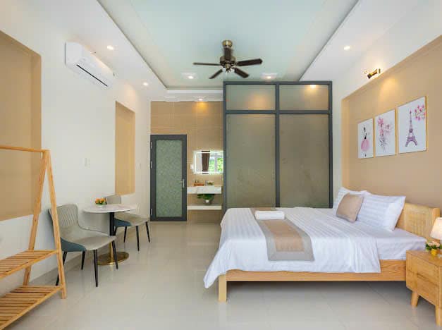 Vị trí của villa trên đường Hoàng Hoa Thám giúp khách dễ dàng di chuyển đến các điểm du lịch và khu ẩm thực sầm uất của Vũng Tàu. Villa cũng gần chợ hải sản Xóm Lưới và các quán ăn nổi tiếng như lẩu cá đuối và bông lan trứng muối Gốc Cột Điện.