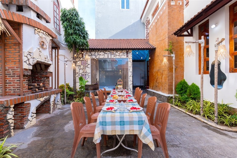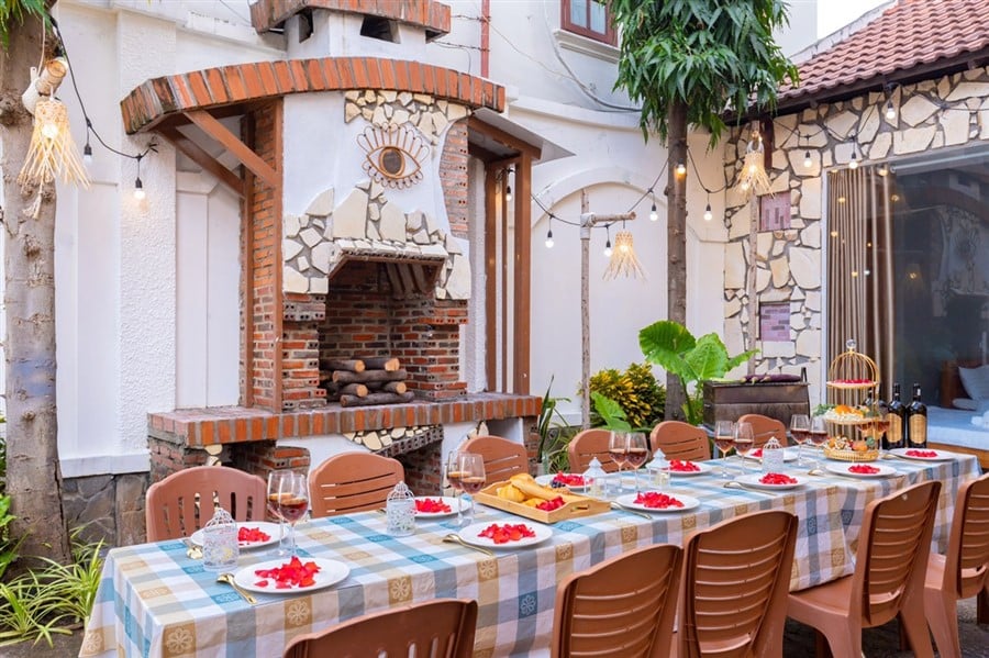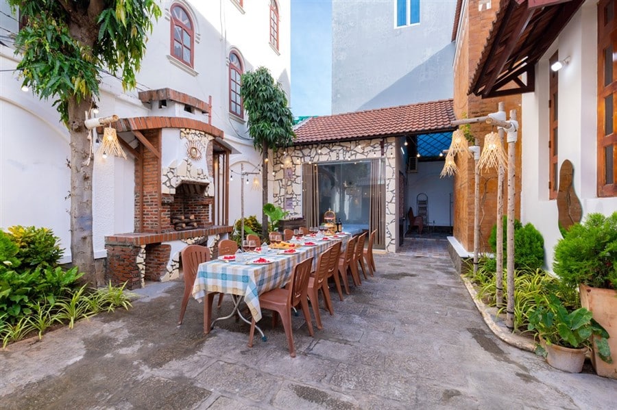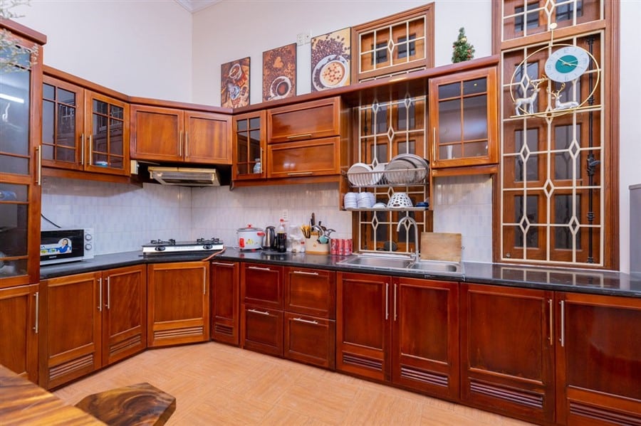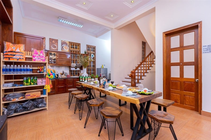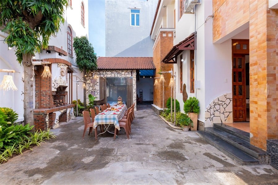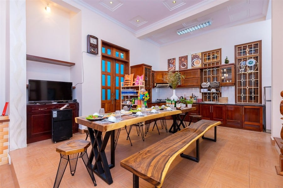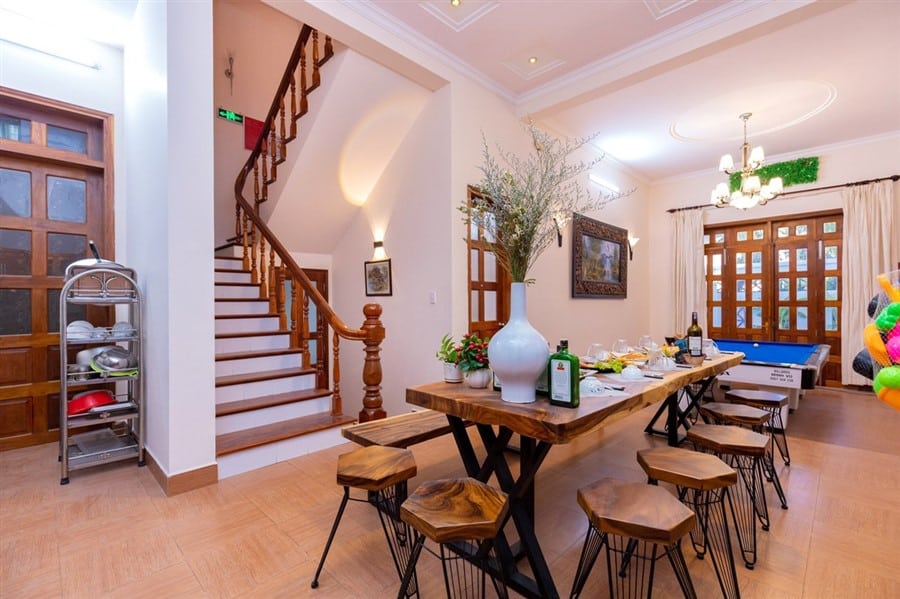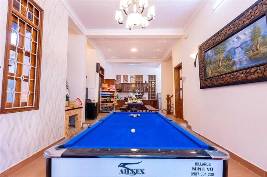 Tiện ích trong villa bao gồm bàn bida lỗ, loa kéo 2 mic, sân đậu xe rộng rãi cho 16 chỗ ngay tại nhà (có thể đậu 3 ôtô trong Villa), và đầy đủ dụng cụ nhà bếp hiện đại, giúp bạn có thể tổ chức các hoạt động nấu nướng và tiệc tùng một cách thuận tiện và tiện lợi.