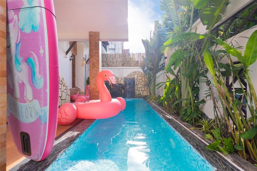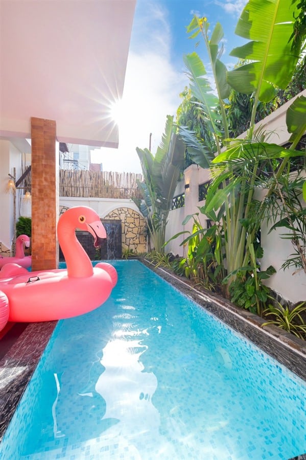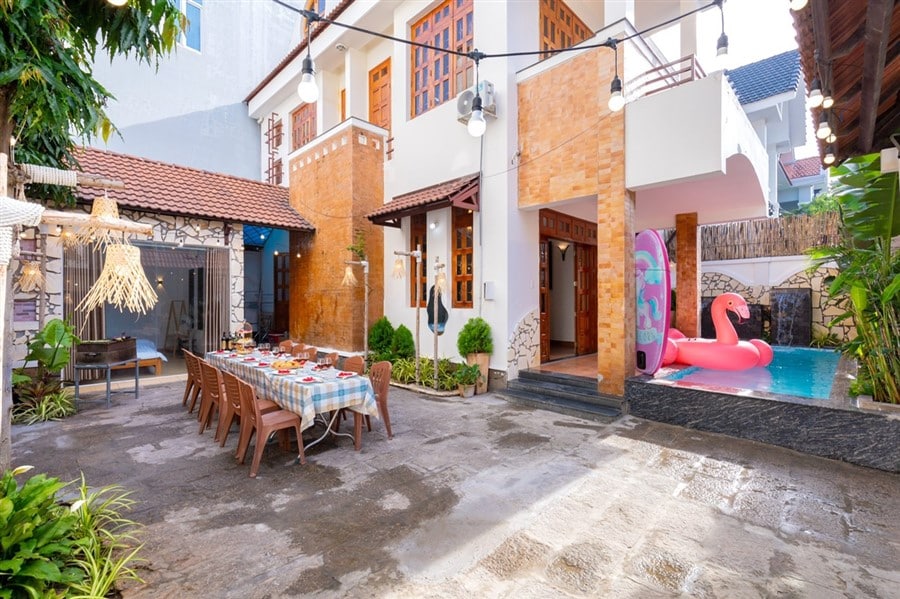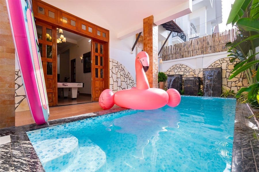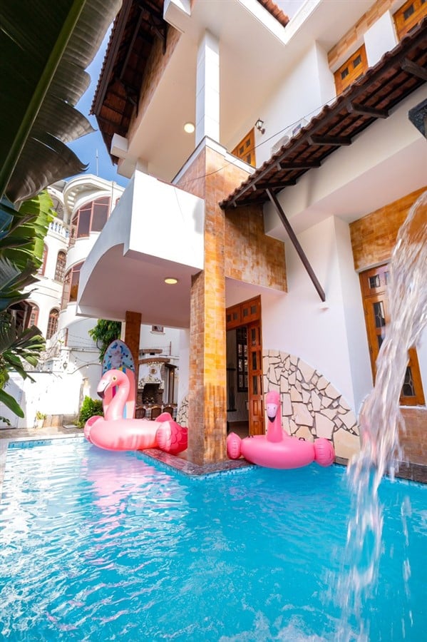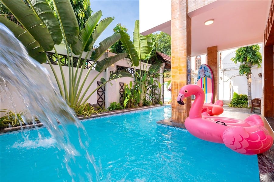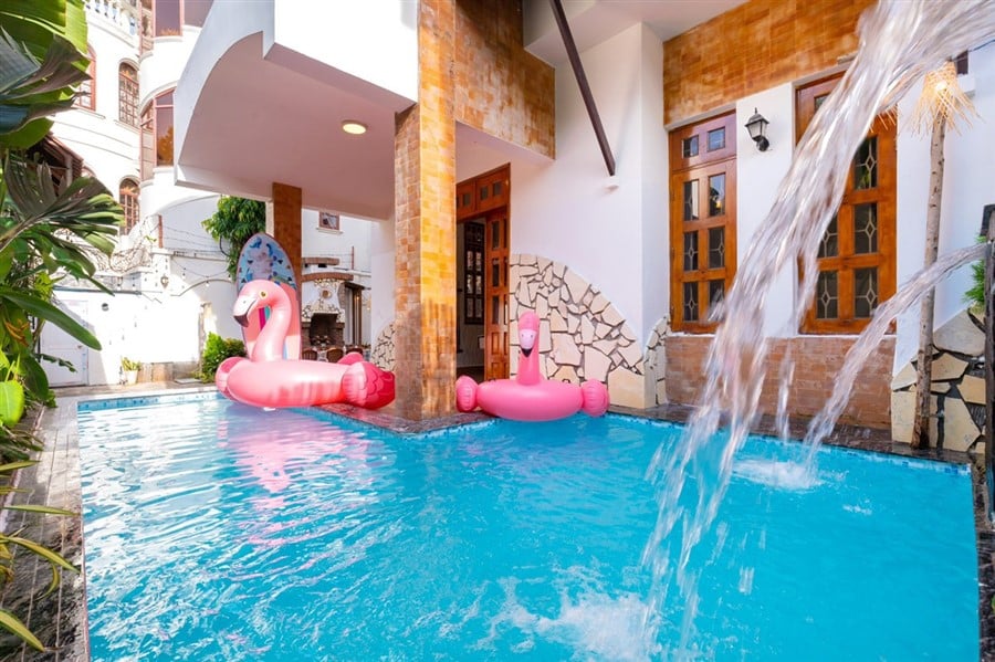Hồ bơi của Noel Villa rộng 35m² với 3 thác đảo nước tạo điểm nhấn độc đáo, mang đến không gian thư giãn và giải trí tuyệt vời cho quý khách. Với khoảng cách chỉ 700m đến bãi biển Bãi Sau, bạn có thể dễ dàng thưởng thức làn nước biển mát lạnh và không khí trong lành của Vũng Tàu. Ngoài ra, villa cũng gần các điểm du lịch nổi tiếng như chợ hải sản Xóm Lưới và tượng Chúa Kito, mang đến nhiều trải nghiệm đặc sắc trong kỳ nghỉ của bạn.