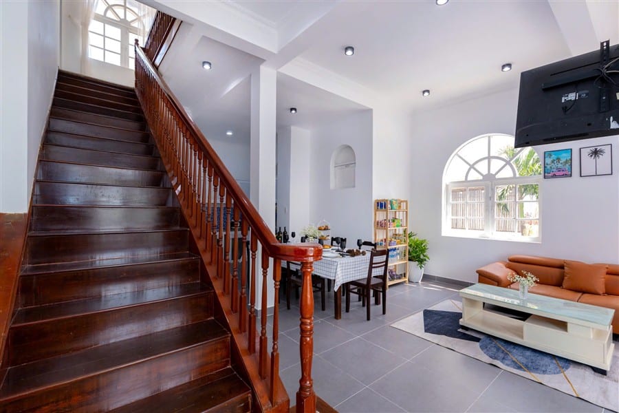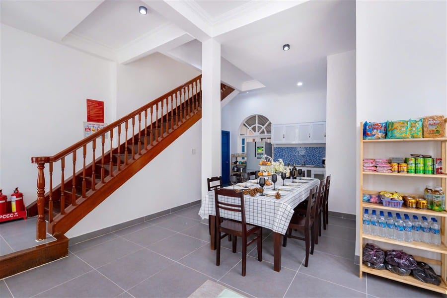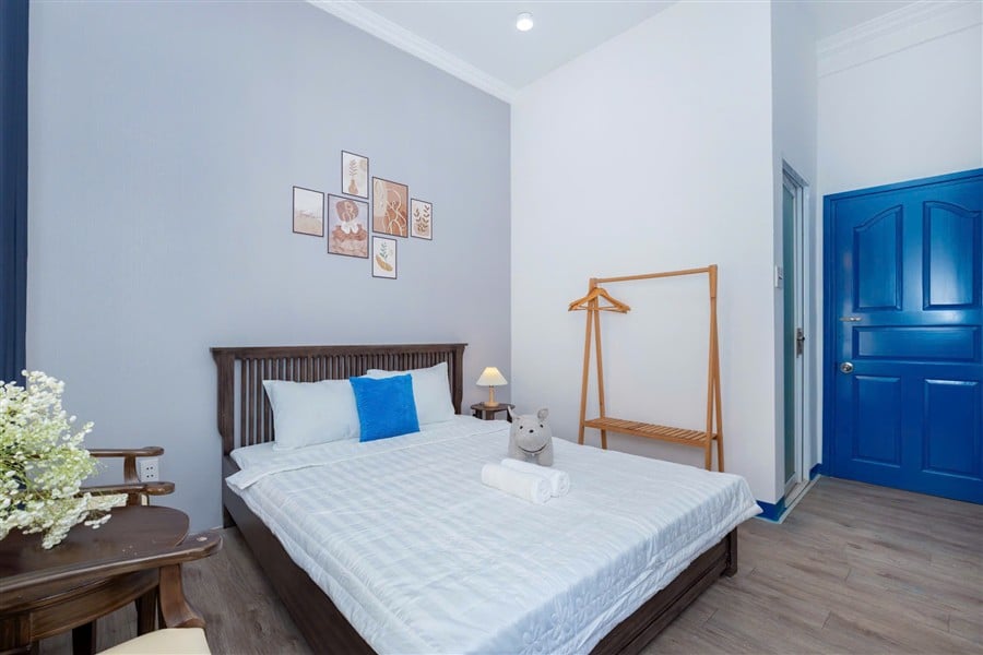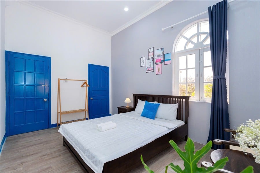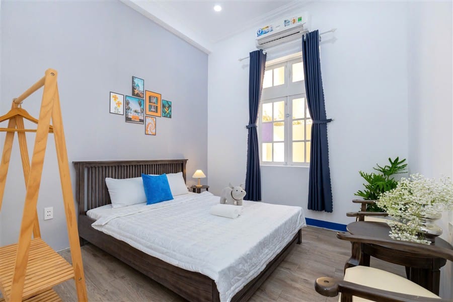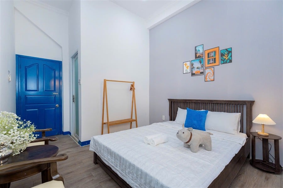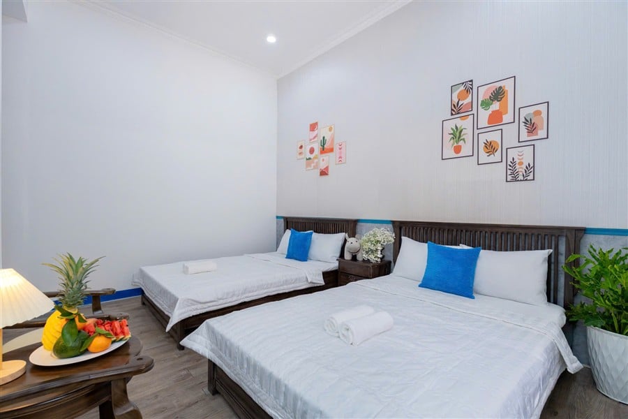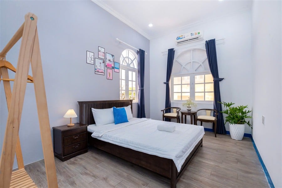Villa có tổng cộng 6 phòng ngủ với 8 giường (2 phòng đôi, 4 phòng đơn) cùng nệm phụ, sức chứa tiêu chuẩn 15 khách và tối đa lên đến 25 khách khi sử dụng thêm nệm phụ. Mỗi phòng đều được trang bị WC riêng, máy lạnh và nội thất hiện đại, đảm bảo sự tiện nghi tối đa. Nội thất được chăm chút với TV màn hình lớn, bàn ủi, máy sấy tóc, dầu gội, sữa tắm và khăn tắm, mang đến trải nghiệm nghỉ dưỡng sang trọng và thoải mái.