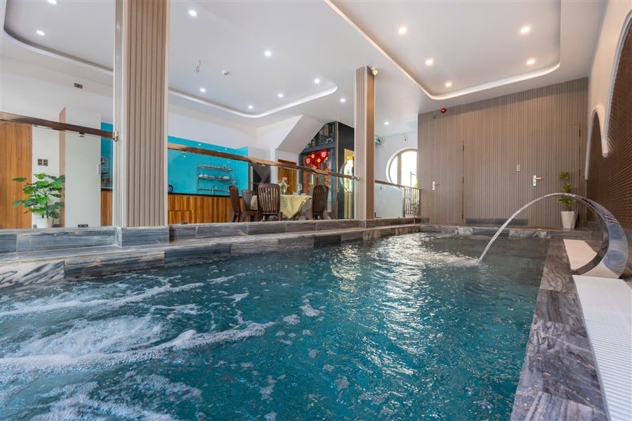 • Hồ bơi trong nhà 30m², khu vực massage, an toàn cho trẻ em