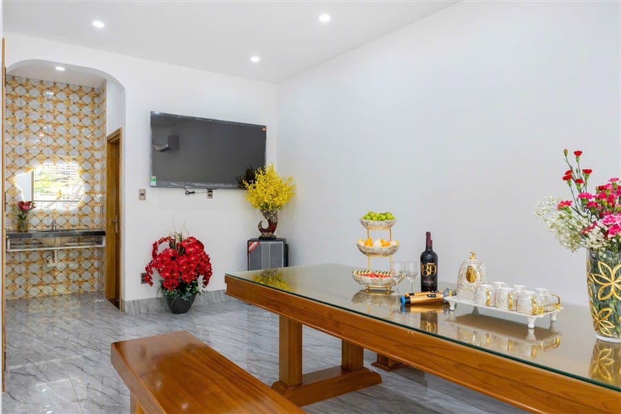 • Bếp đầy đủ dụng cụ nấu ăn, gia vị cơ bản
