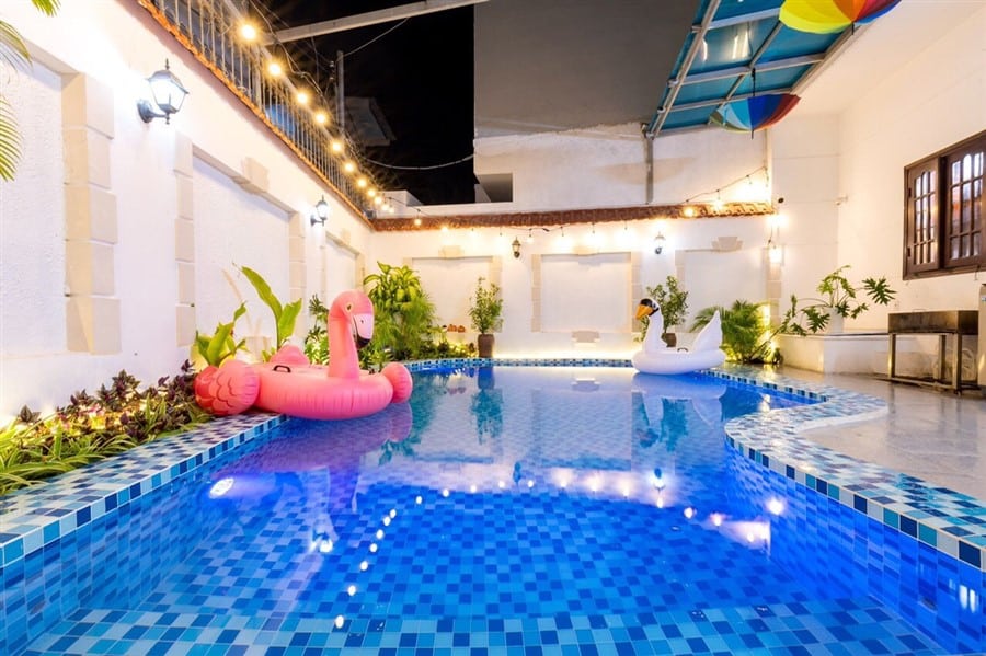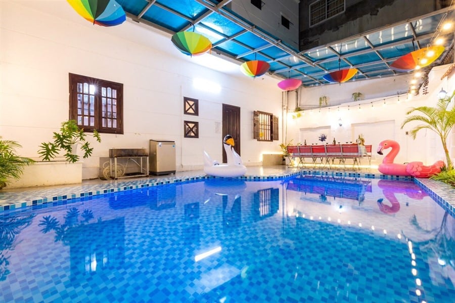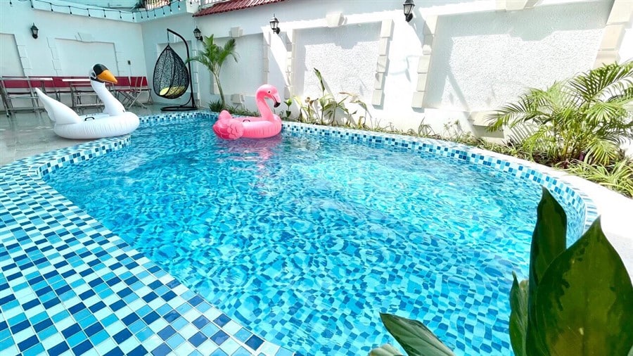 Nơi đây được trang bị đầy đủ tiện nghi như dàn karaoke và bàn Bida để bạn và gia đình thưởng thức, cùng với hồ bơi rộng 33m2 là không gian lý tưởng để thư giãn và vui chơi. Một chiếc xe 7 chỗ sẵn sàng phục vụ nhu cầu di chuyển của bạn, cùng các dịch vụ như tổ chức tiệc BBQ, cho thuê xe máy, loa kéo và trang trí tiệc sẽ làm cho kỳ nghỉ của bạn thêm phần đặc biệt.